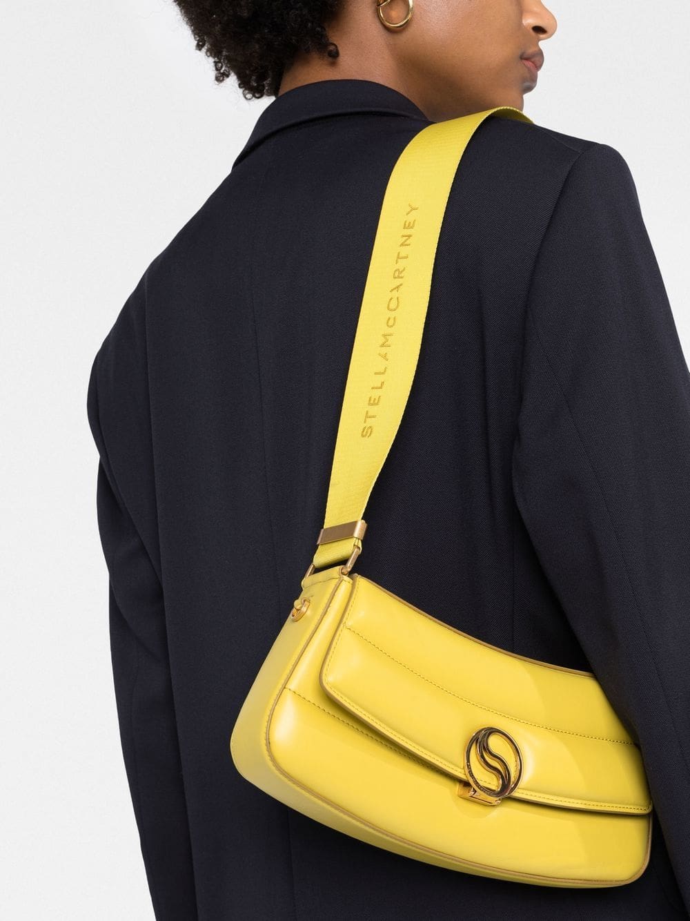 Showcasing Stella McCartney's next chapter, the S-Wave shoulder bag made its debut during the label's AW22 runway show. Presented in a striking yellow finish, this design is drawn together with a gold-tone monogram plaque at the front.