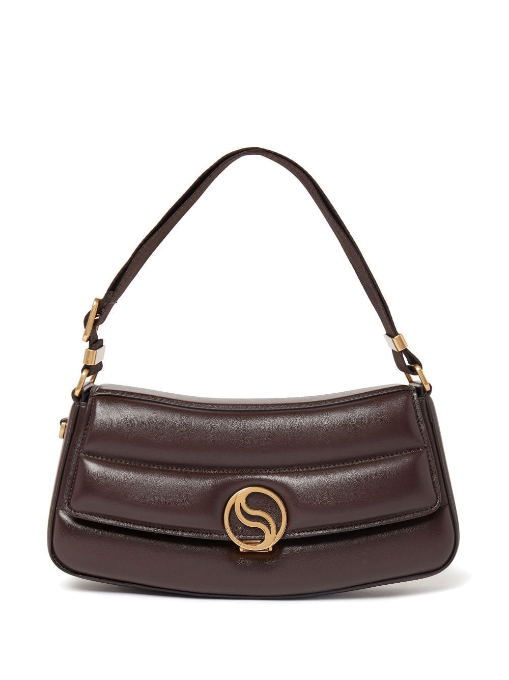 - gold-tone logo plaque