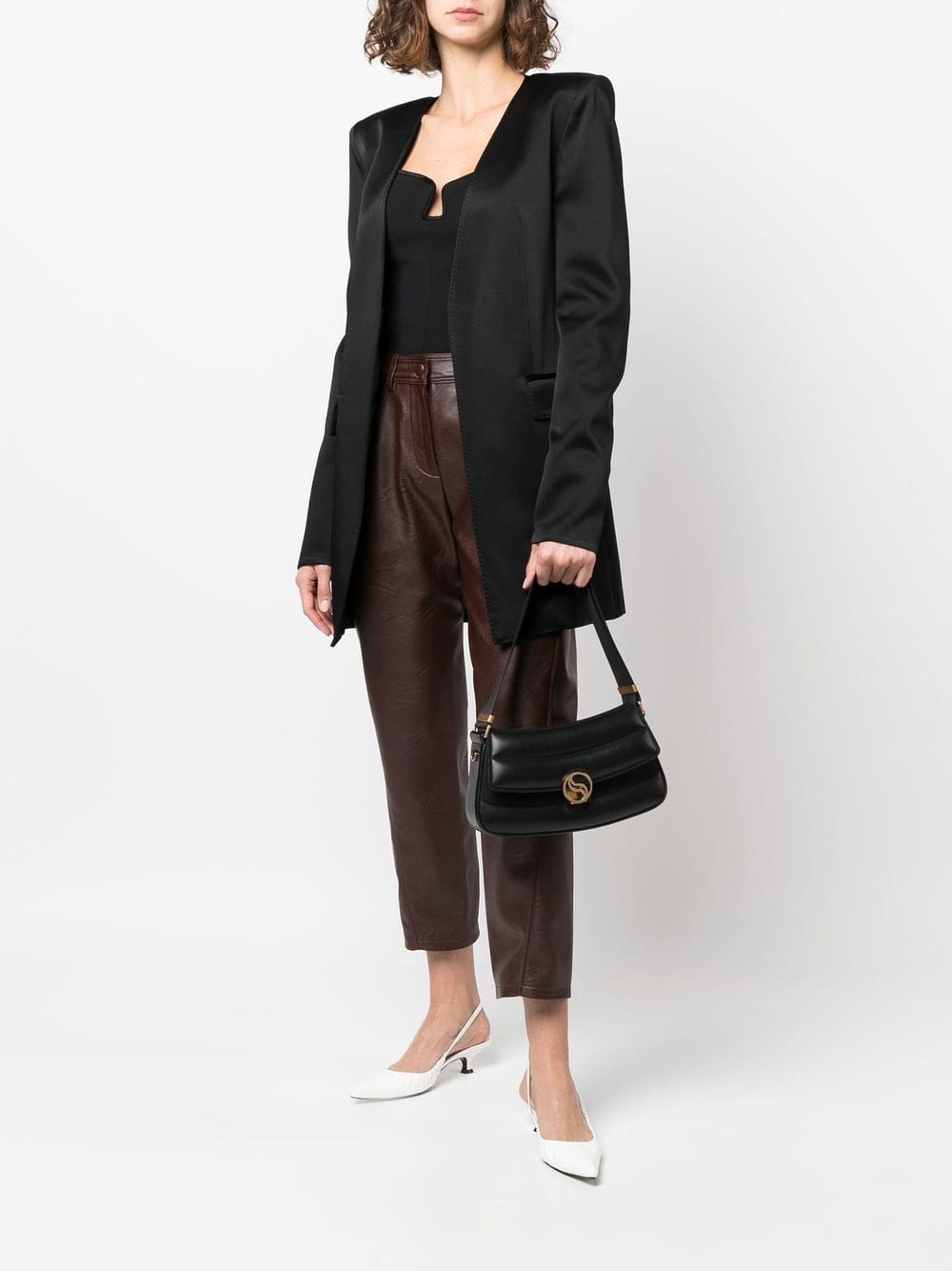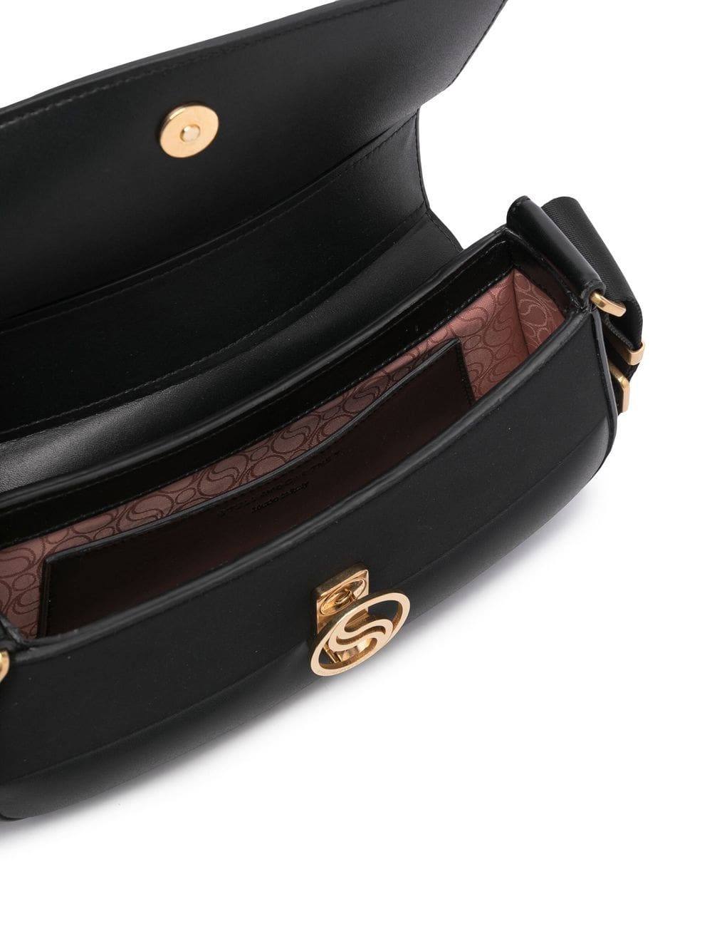 Showcasing Stella McCartney's new season branding, this padded shoulder bag made its debut during the label's AW22 runway show. Presented here in an all-black hue, the silhouette features a branded internal lining and adjustable shoulder strap.