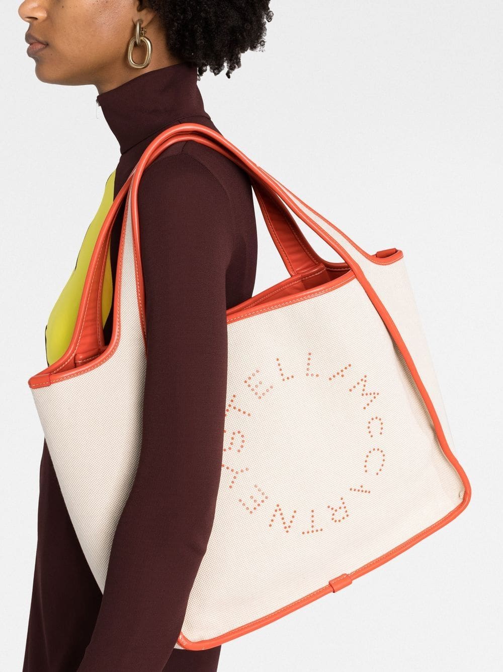 This tote bag from Stella McCartney boasts a relaxed design thanks to a spacious silhouette complemented by two long top handles. Meanwhile, logo lettering to the front offers a branded finish.