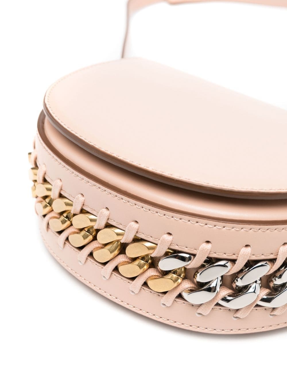 Stella McCartney updates its signature diamond-cut chain detailing each season, refreshing the classic trim for new silhouettes. Crafted from the brand's faux leather, this small Frayme flap shoulder bag is embellished with the chunky gold and silver-tone chain, interwoven with the trademark whipstitch detailing.
