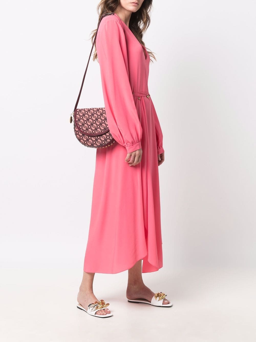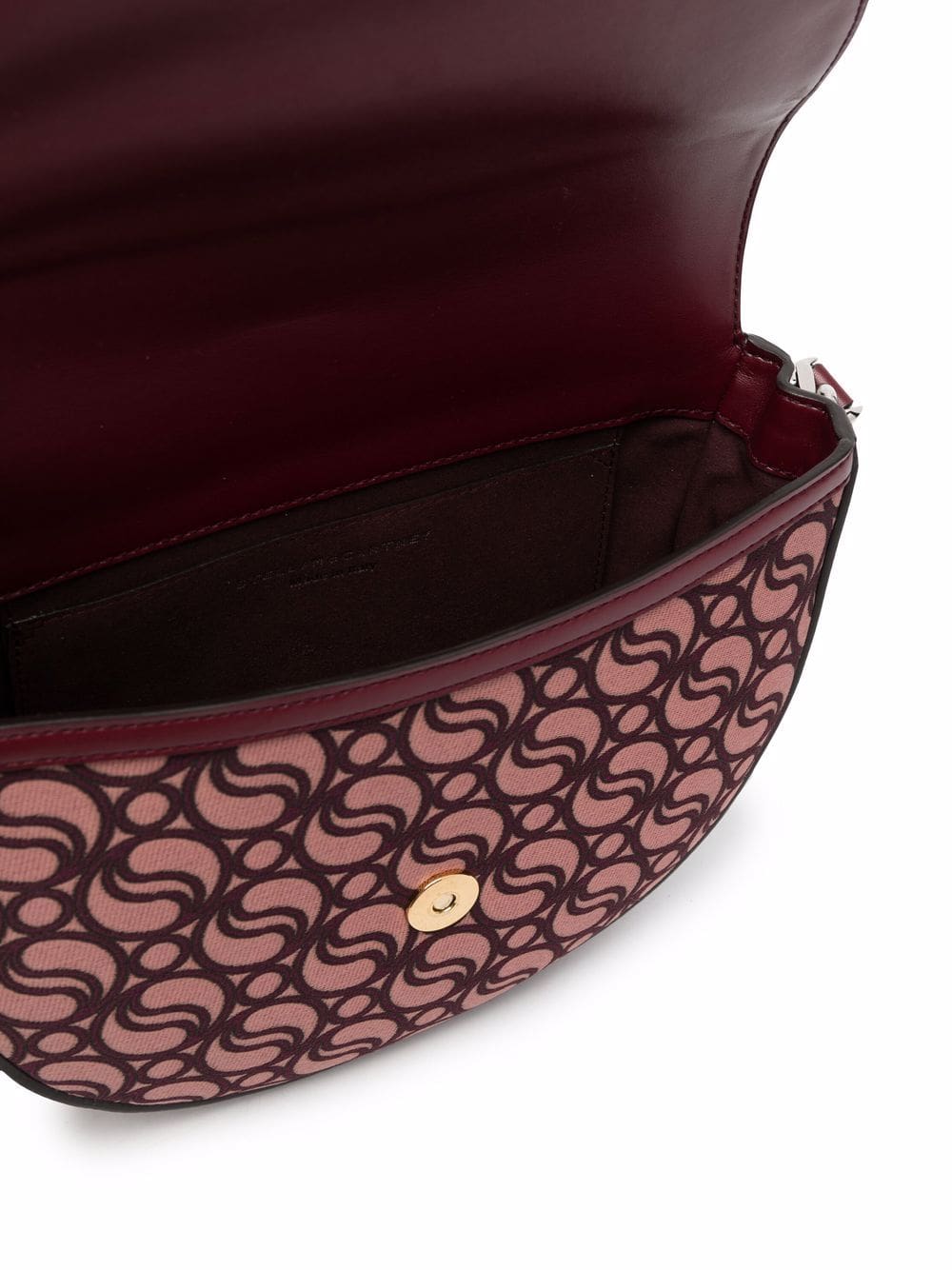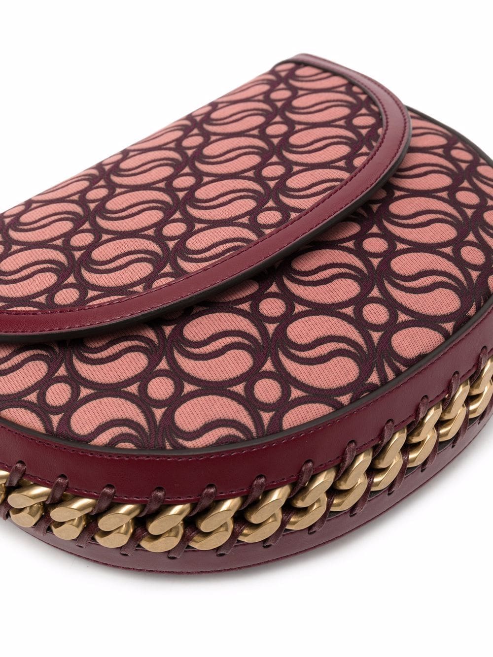 Stella McCartney's Frayme bag takes note from the Falabella's signature use of chain-link detailing. Trimmed with a gold-tone chain, this small shoulder bag features the brand's iconic monogram on a pink and red colourway.