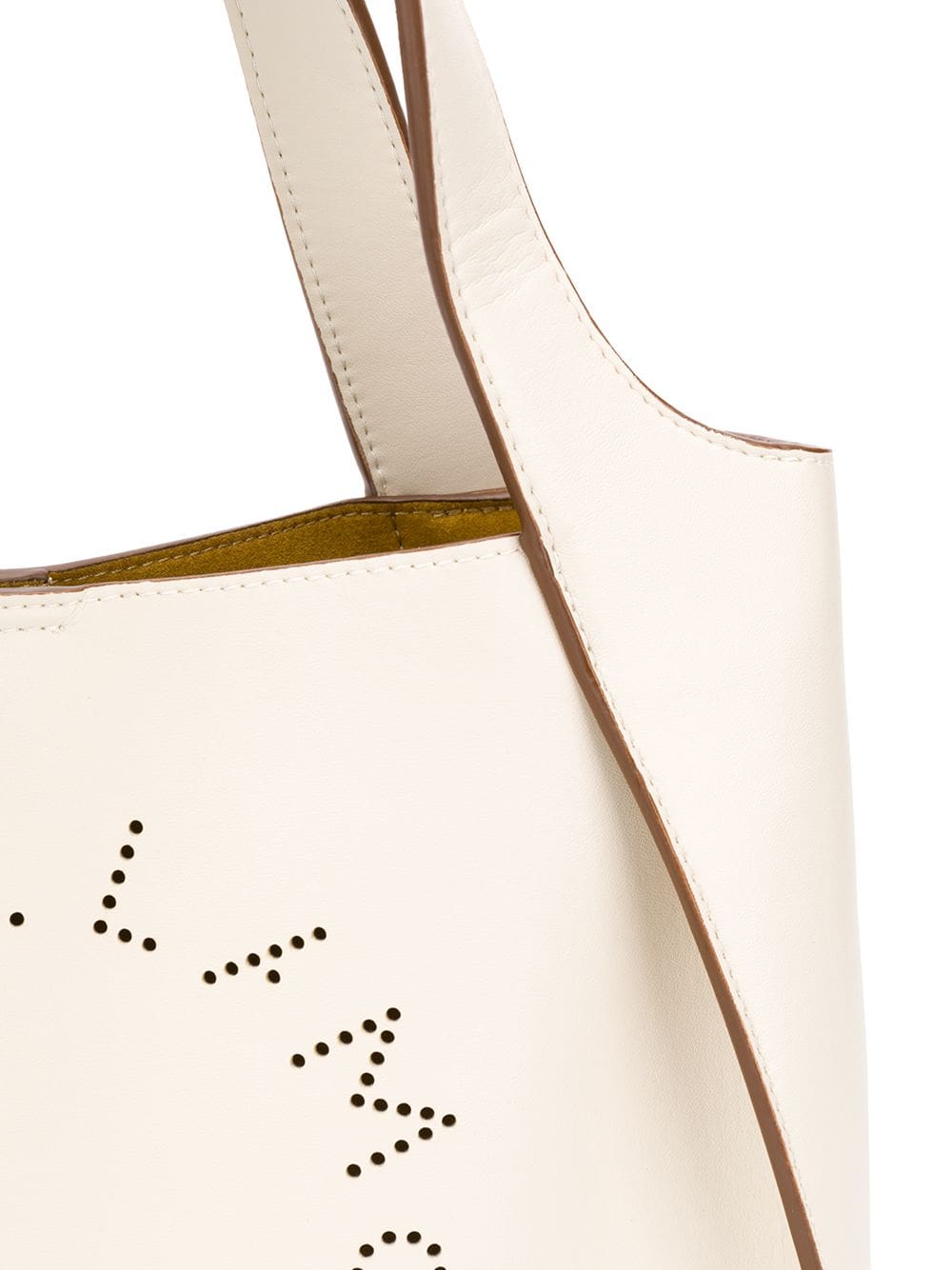 Best friends come in all shapes and sizes - it just so happens that this one comes in the form of a Stella McCartney small logo tote. Crafted from white faux leather, this hero piece keeps it nice and simple, with a minimal design decorated only by the perforated logo to the front. A friend for life. Featuring top handles, a detachable shoulder strap, a magnetic fastening, a removable pouch and a perforated logo design to the front. POSITIVELY CONSCIOUS: We’ve joined forces with ethical agency Good On You to give you the power to choose positively. This piece is from a brand that scores well on their key criteria.