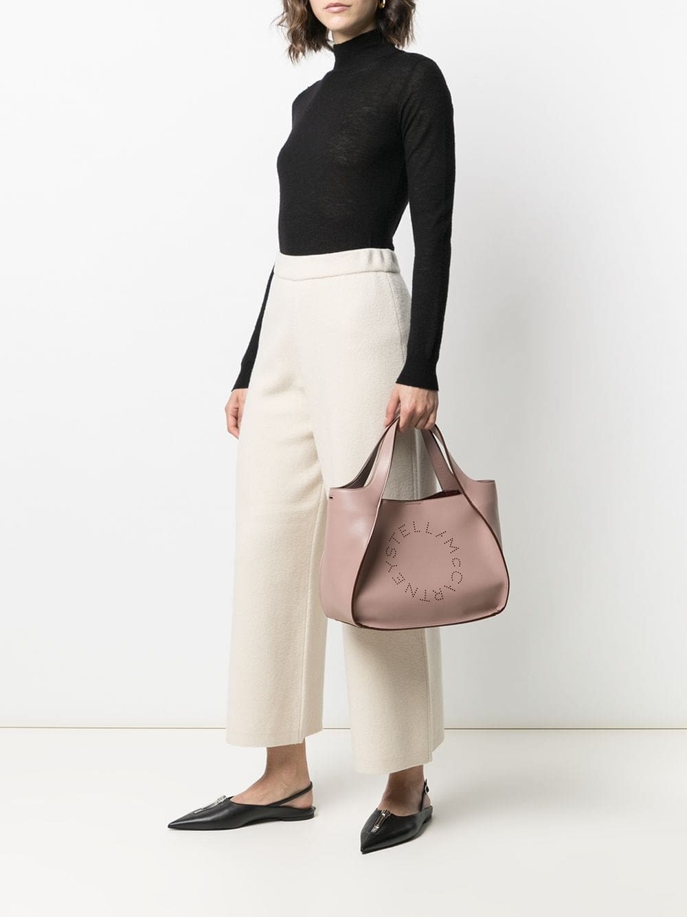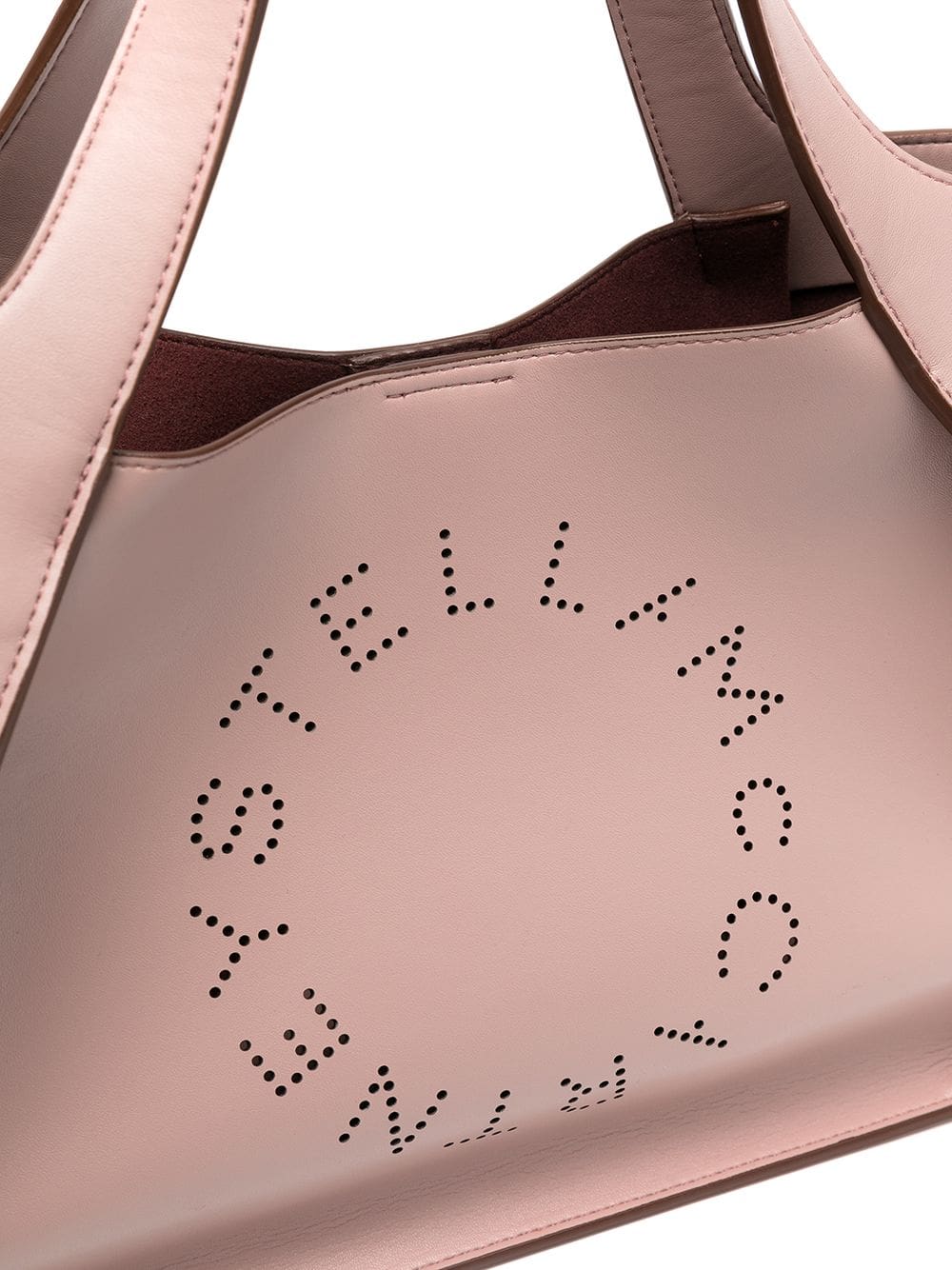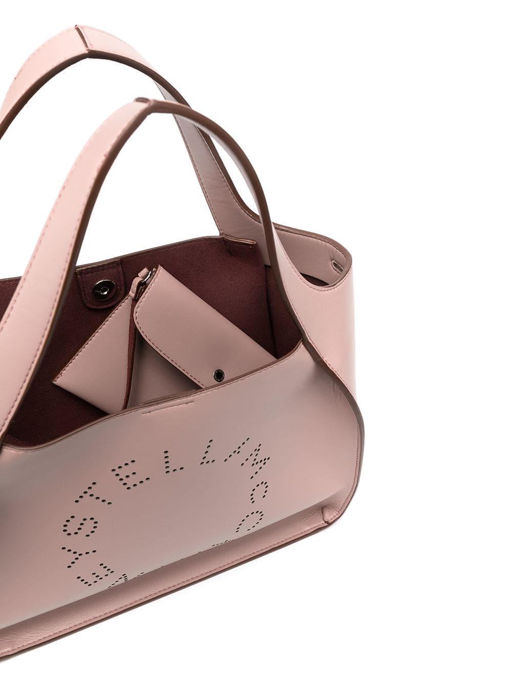 Pretty in pink. Crafted from artificial leather, this pink Stella Logo tote bag features a perforated logo detail to the front, making sure you look great while honouring your ethical standards. It feels good to look great with Stella.