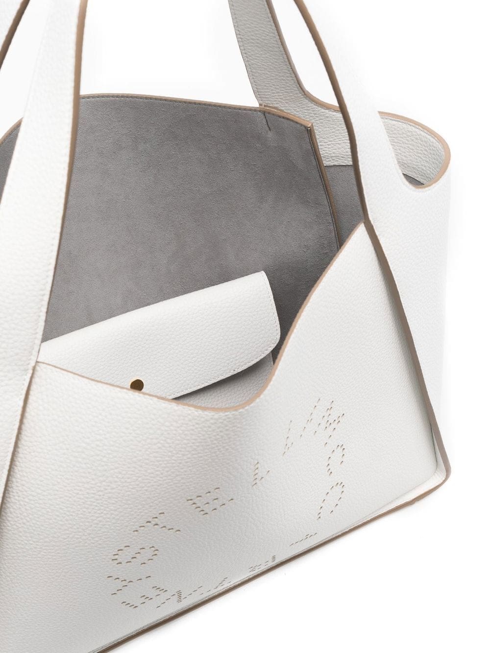Stella McCartney applies its signature perforated logo detail onto a new silhouette every season. Crafted from the brand's signature eco-conscious faux leather in pure white, this Stella Logo tote bag presents the hallmark design on a softly-structured base.