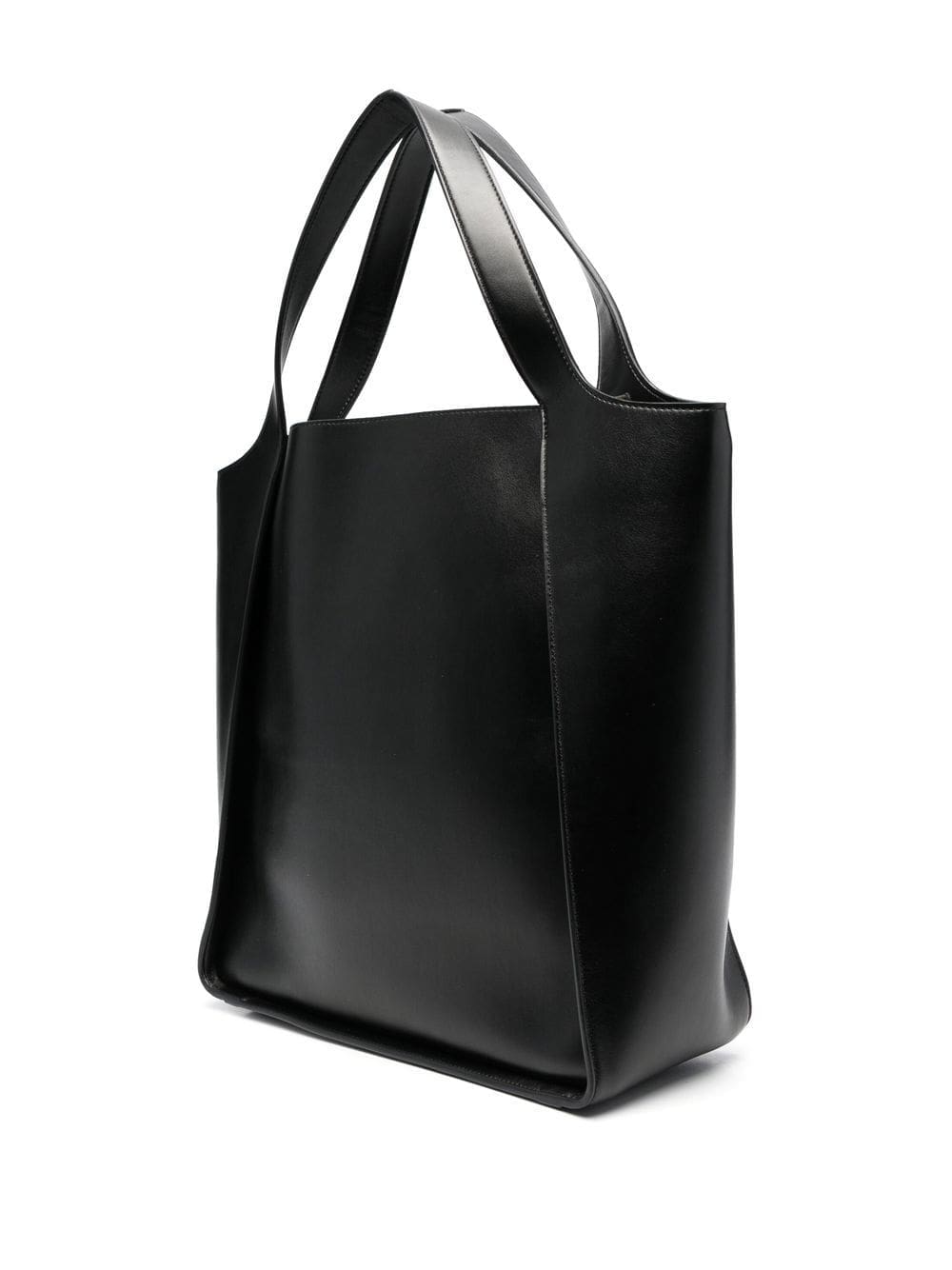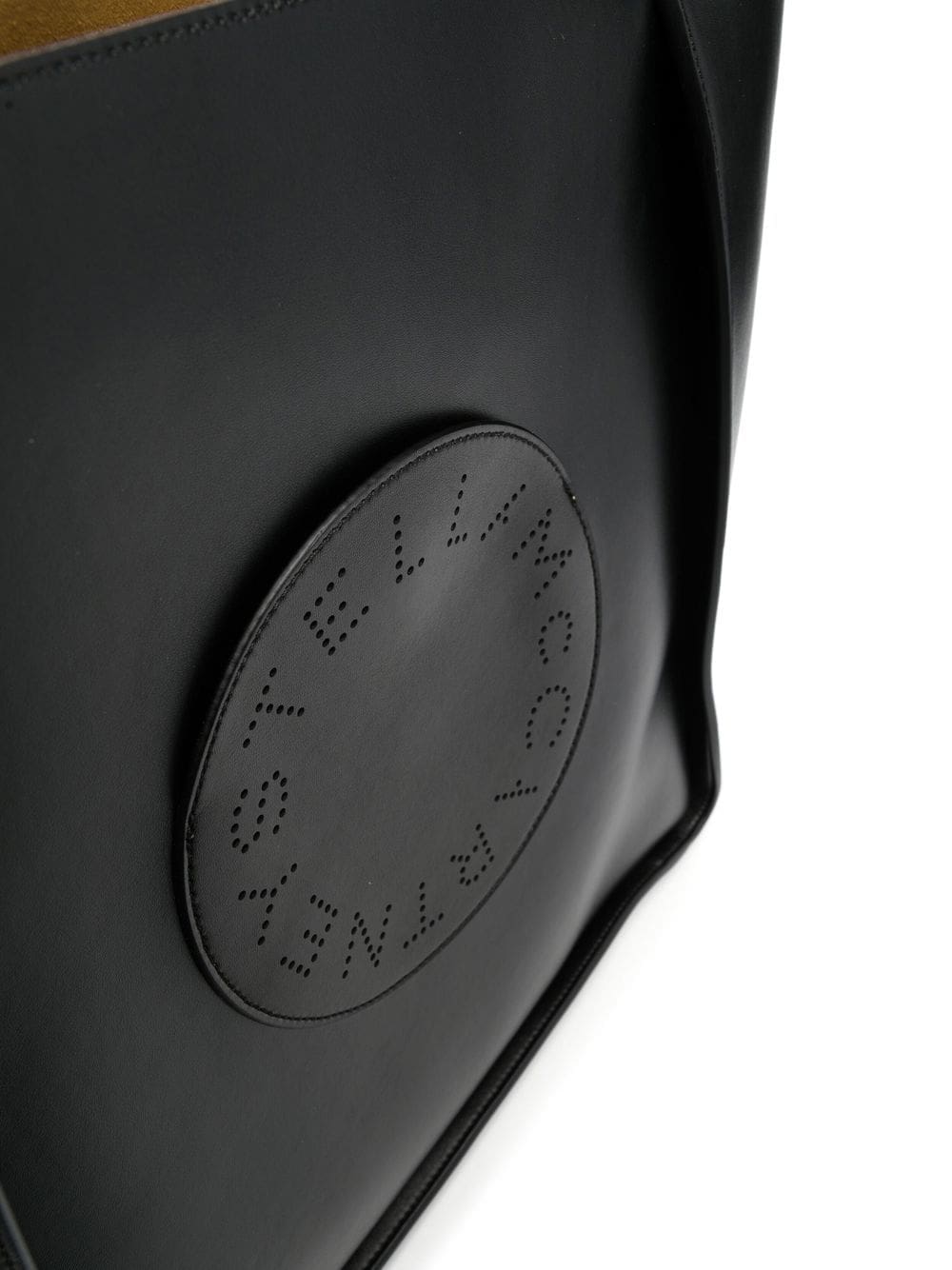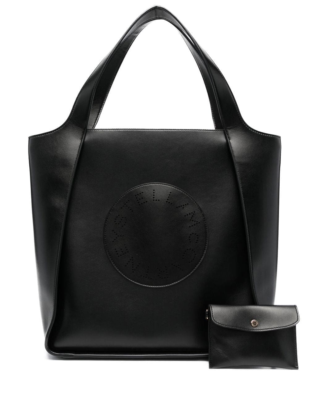 black faux leather punch-hole detailing logo stamp to the front two top handles main compartment Conscious: We've partnered with Good On You – an ethical agency that rates how sustainably brands perform. This product comes from a brand that performs well in relation to their impact on animals.