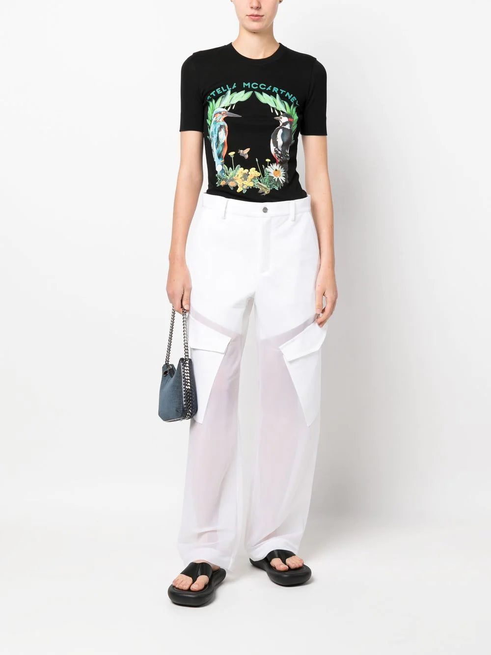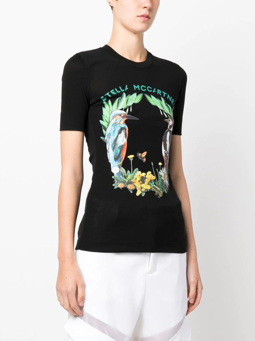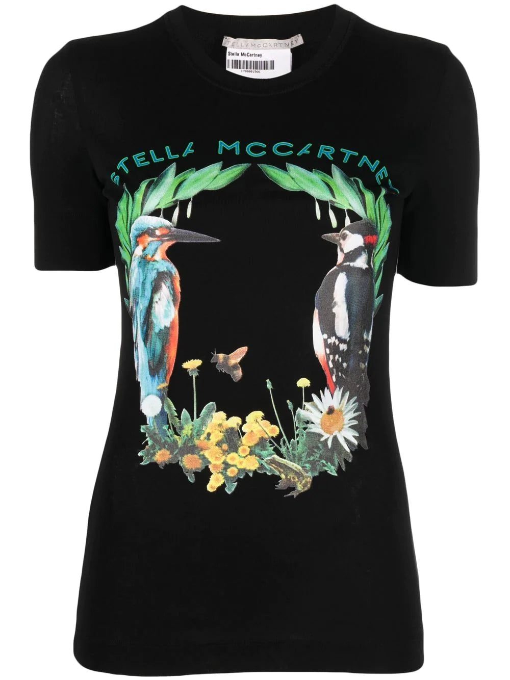 The Bird Crest T-shirt from STELLA MCCARTNEY featuring black/multicolour, cotton, logo print to the front, graphic print to the front, round neck, short sleeves and straight hem. Conscious: We've partnered with Good On You – an ethical agency that rates how sustainably brands perform. This product comes from a brand that performs well in relation to their impact on animals..