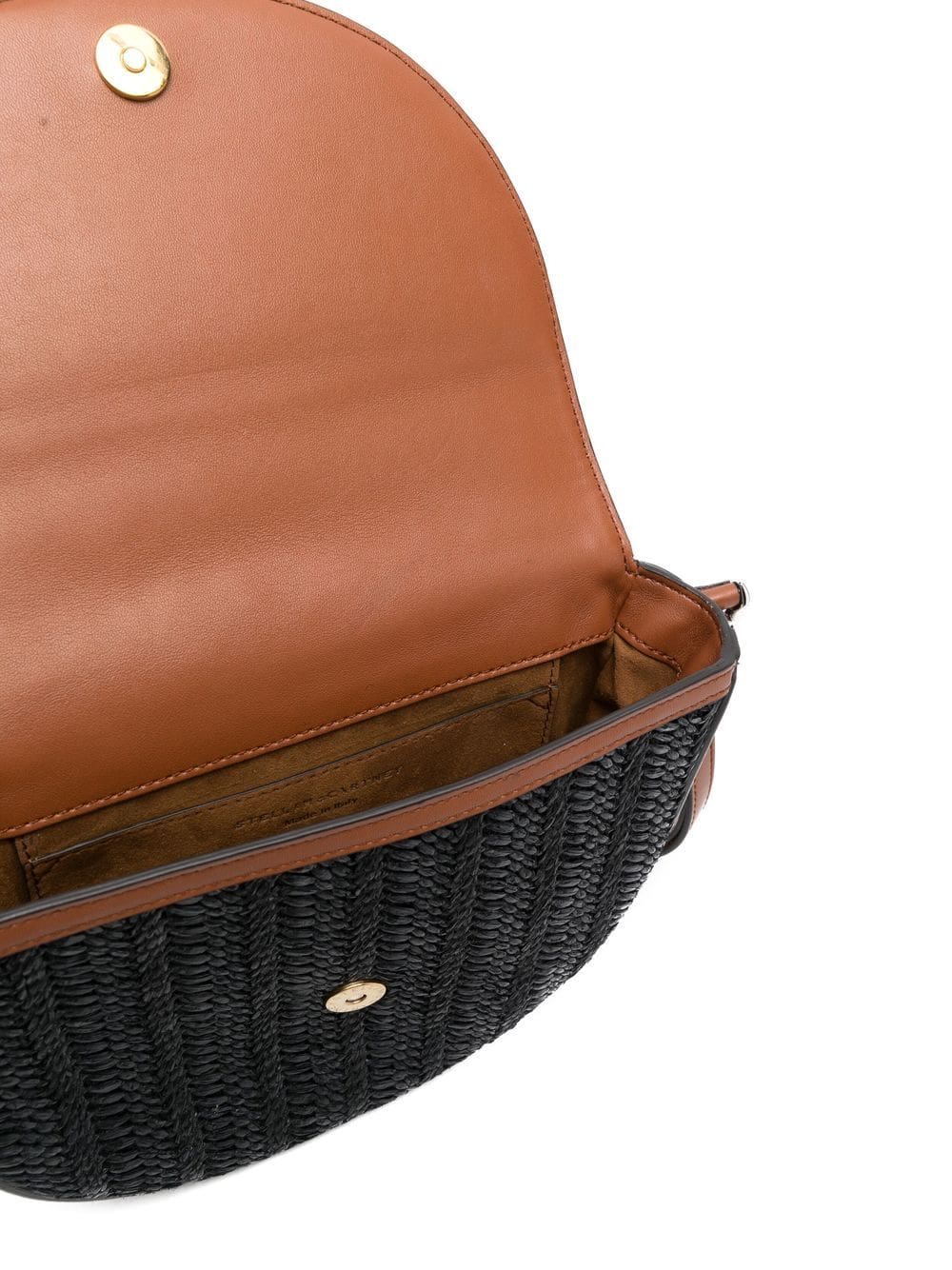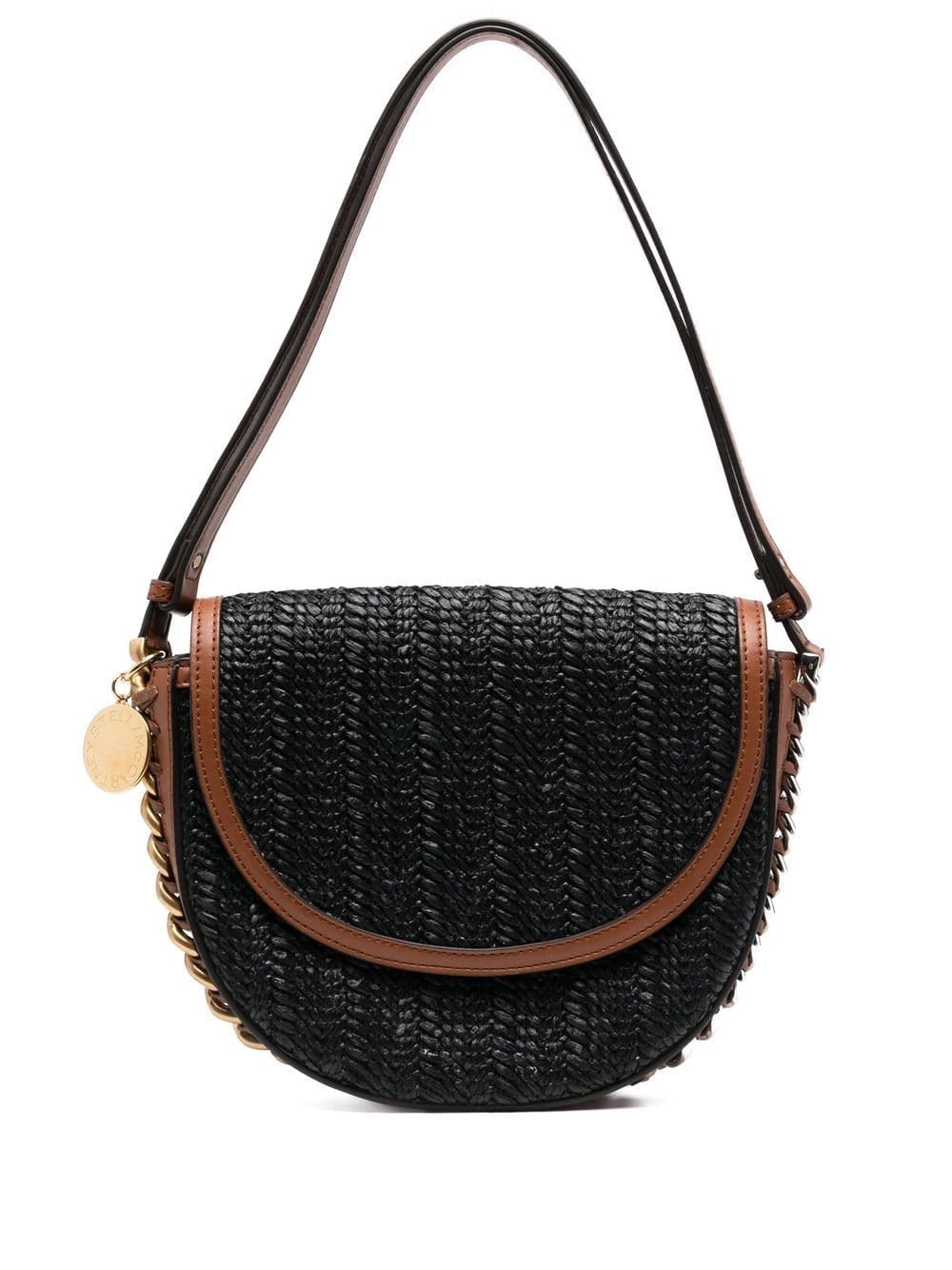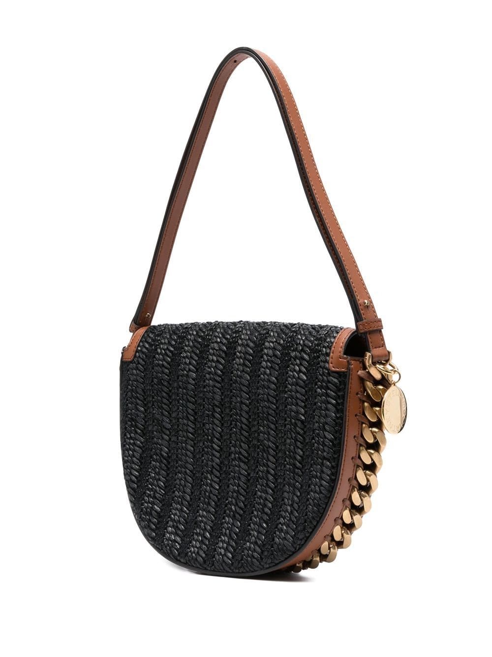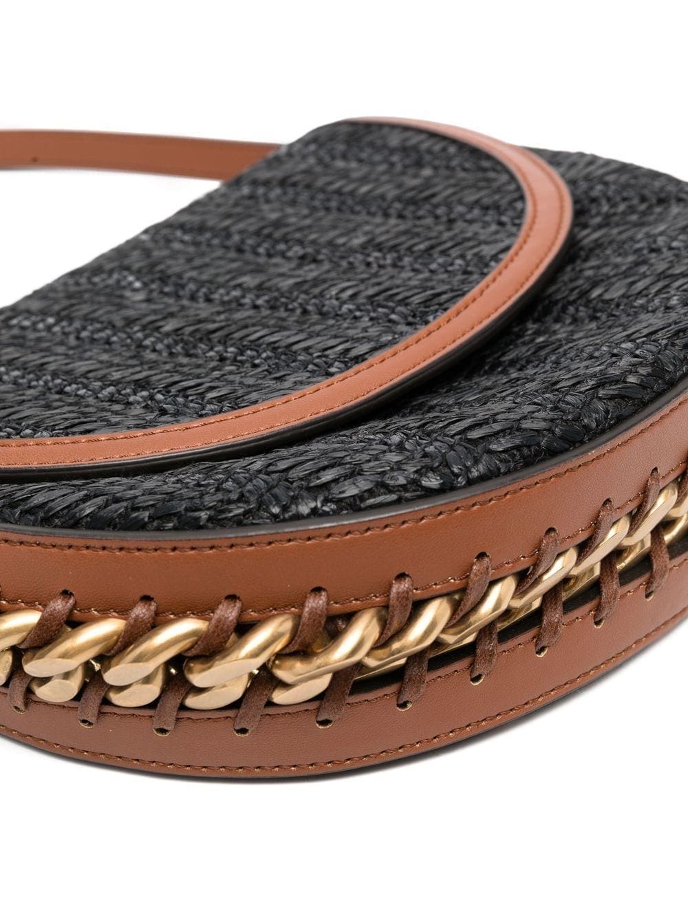 black/brown interwoven design Cuban-link detailing single shoulder strap foldover top with magnetic fastening main compartment internal slip pocket Conscious: We've partnered with Good On You – an ethical agency that rates how sustainably brands perform. This product comes from a brand that performs well in relation to their impact on animals.