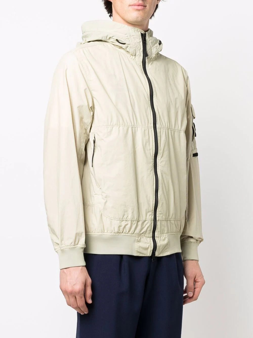 With a lightweight construction in a light green hue, this hooded jacket from Stone Island is punctuated with the brand's signature Compass badge at the left sleeve for a recognisable look.