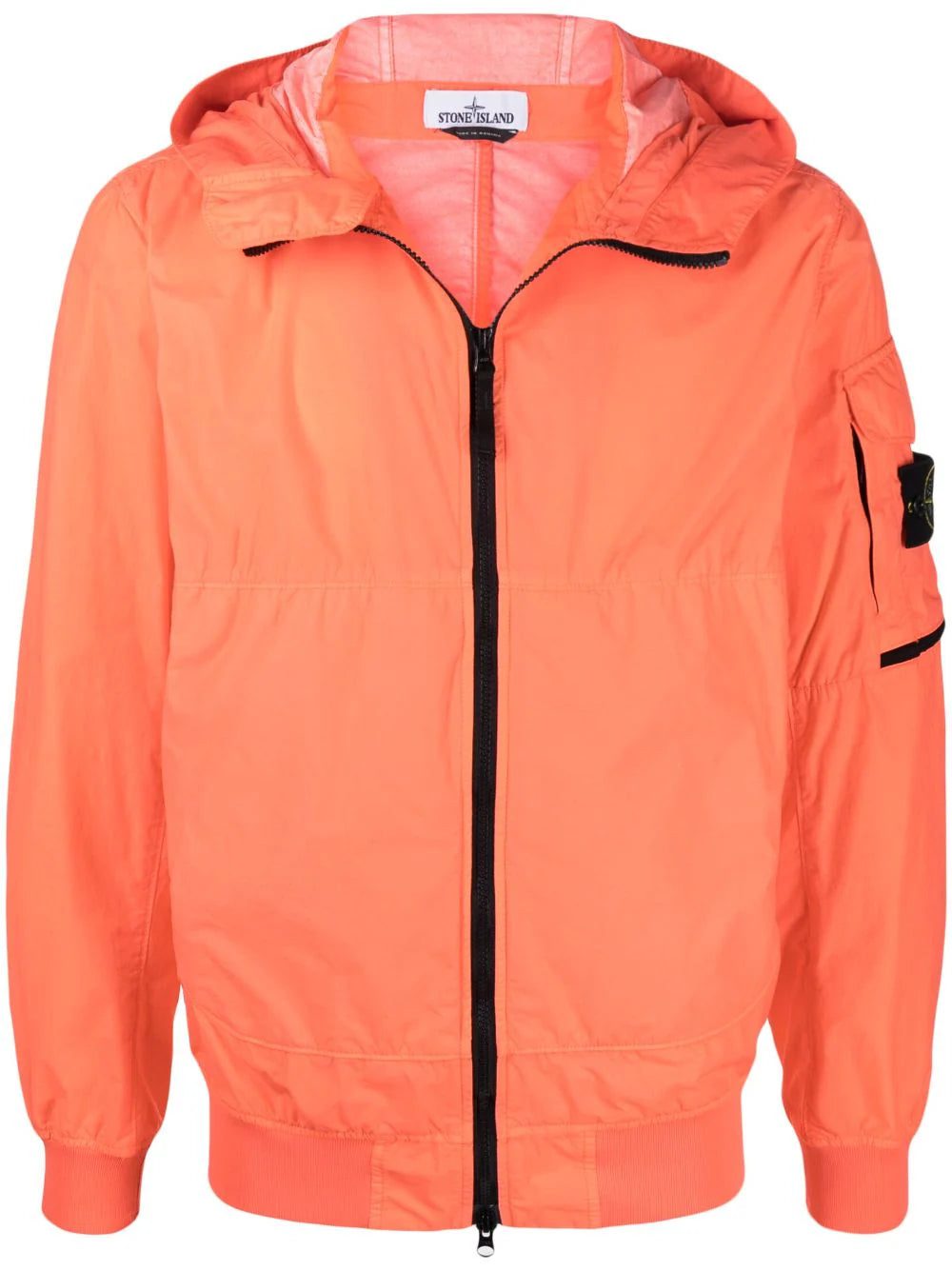 With a lightweight construction in a coral orange hue, this hooded jacket from Stone Island is punctuated with the brand's signature Compass badge at the left sleeve for a recognisable look.