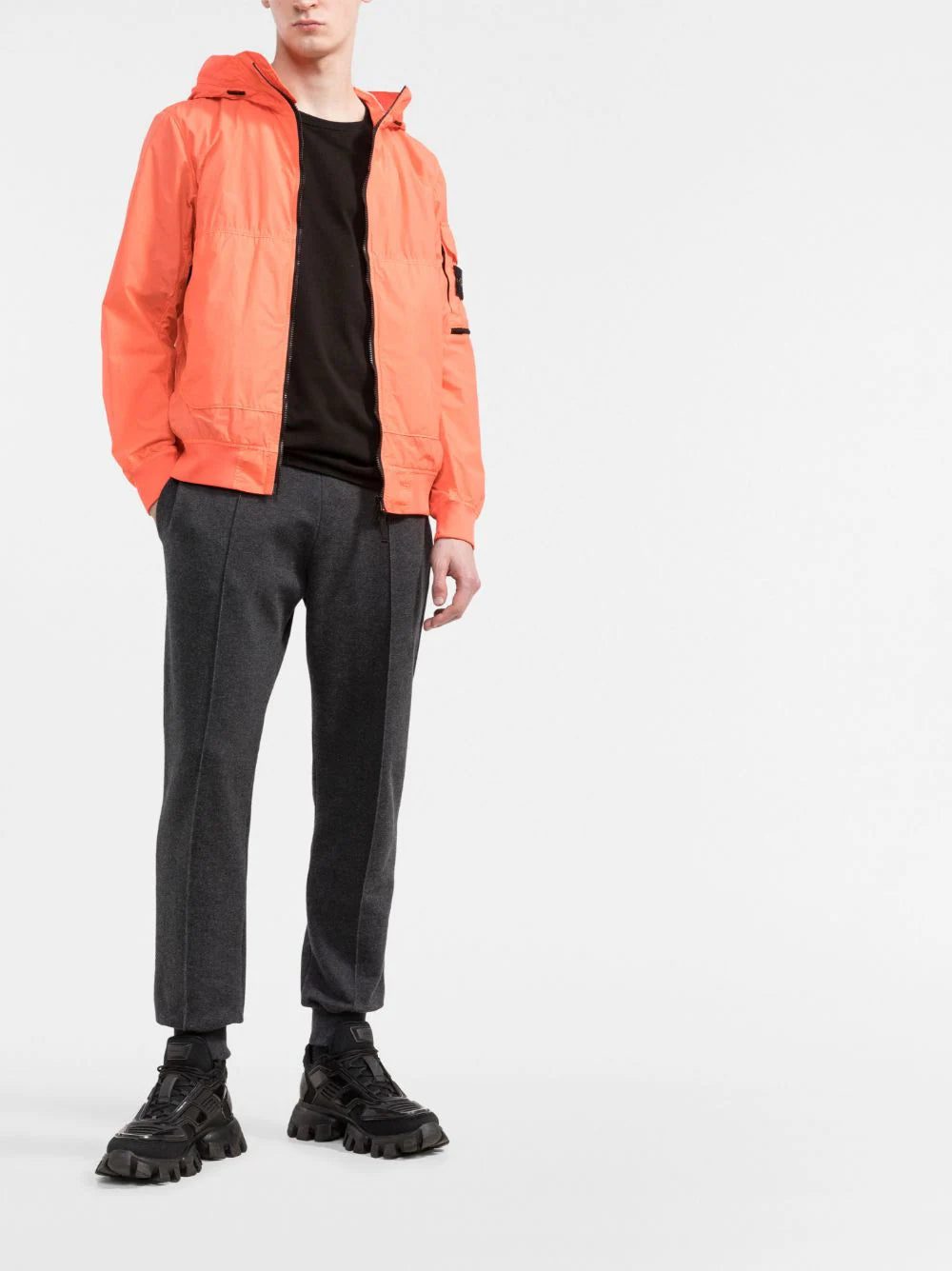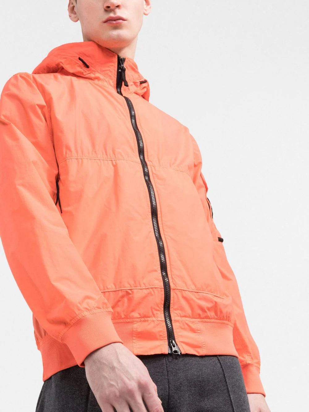 With a lightweight construction in a coral orange hue, this hooded jacket from Stone Island is punctuated with the brand's signature Compass badge at the left sleeve for a recognisable look.