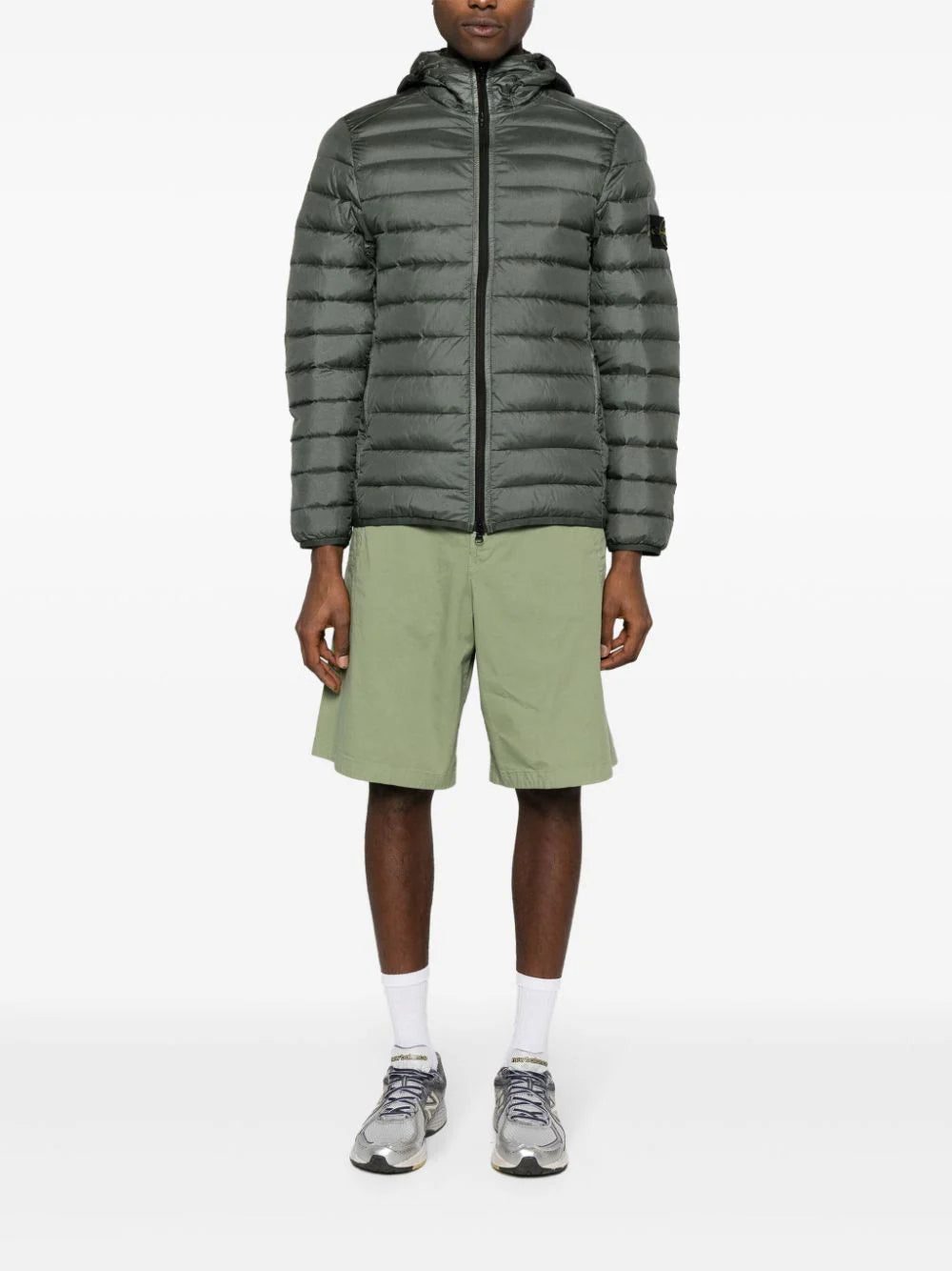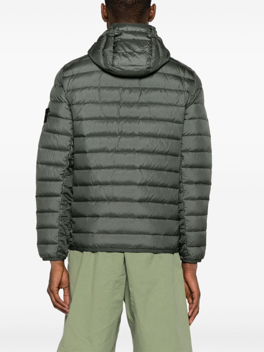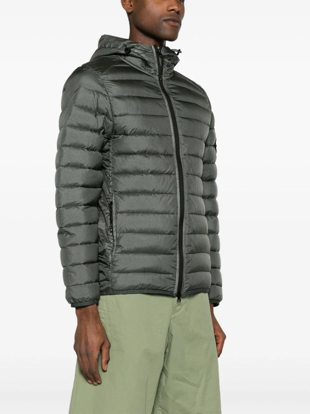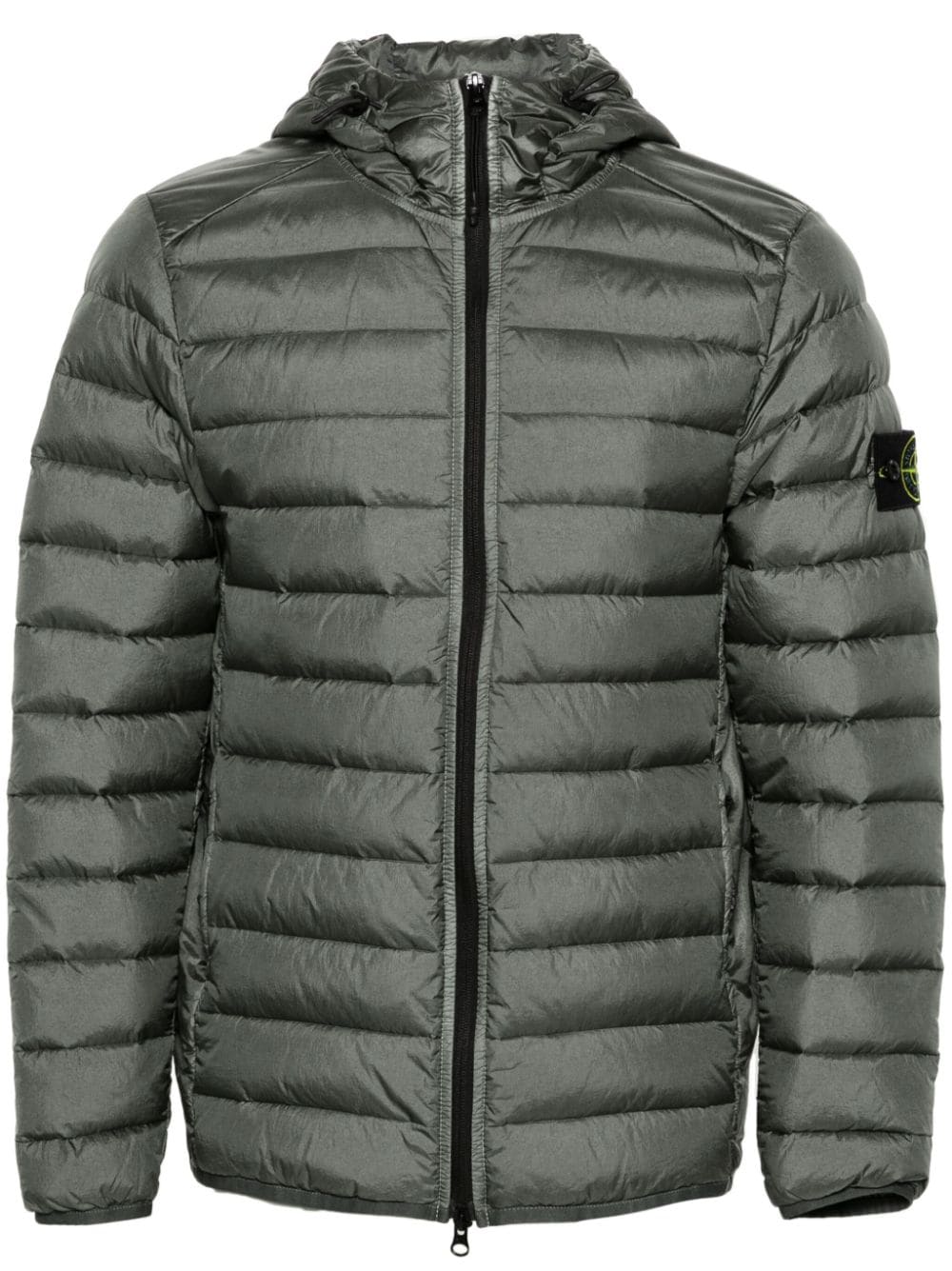 This dark-green Stone Island jacket is made from loom-woven chambers shell for a seamless construction and increased holding capacity for the RDS-certified down fill. It’s treated with an anti-drop coating to protect from damp and can be packed away into an inner pocket for easy transport.