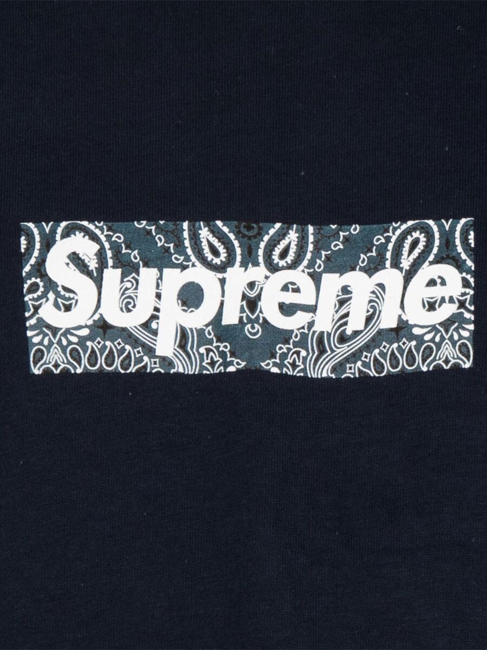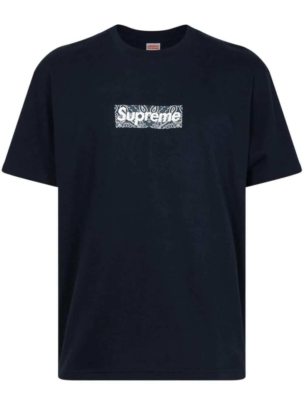 Supreme reimagines their signature box logo with a bandana print here. It details the front of this navy blue relaxed T-shirt for a branding-focused finish.