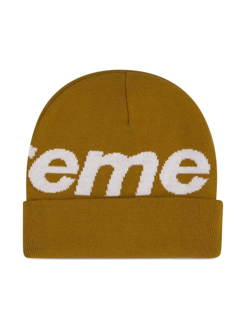 See this beanie? Now picture you wearing it whilst sipping a hot chocolate in a riverside cafe. Bam! Magic happened! Made from dark gold-tone, this big logo piece from supreme will make wonders for you this winter. I can feel it coming! Featuring a knitted style and an oversized logo.