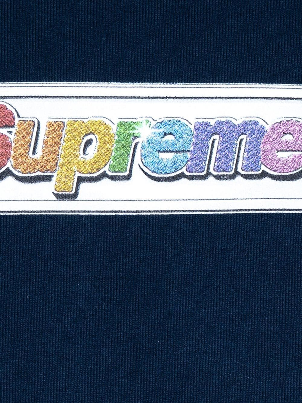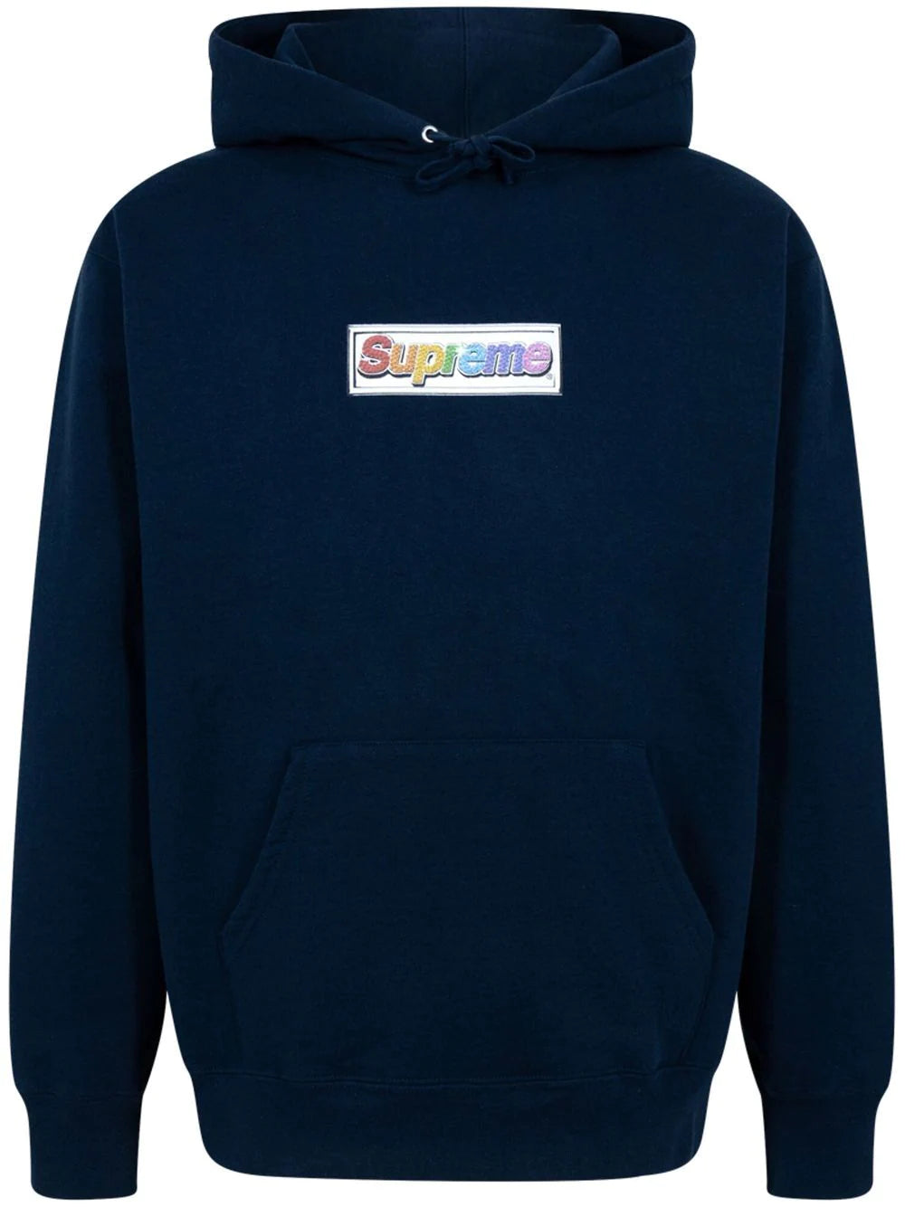 The Supreme Bling Box Logo hoodie in blue is an all-cotton hooded sweatshirt by the 'World Famous' streetwear brand that features its iconic Box Logo in a fun design. The piece is highlighted by a 'bling' style Box Logo on the chest remembering late ‘90s and early 2000s hip-hop culture.