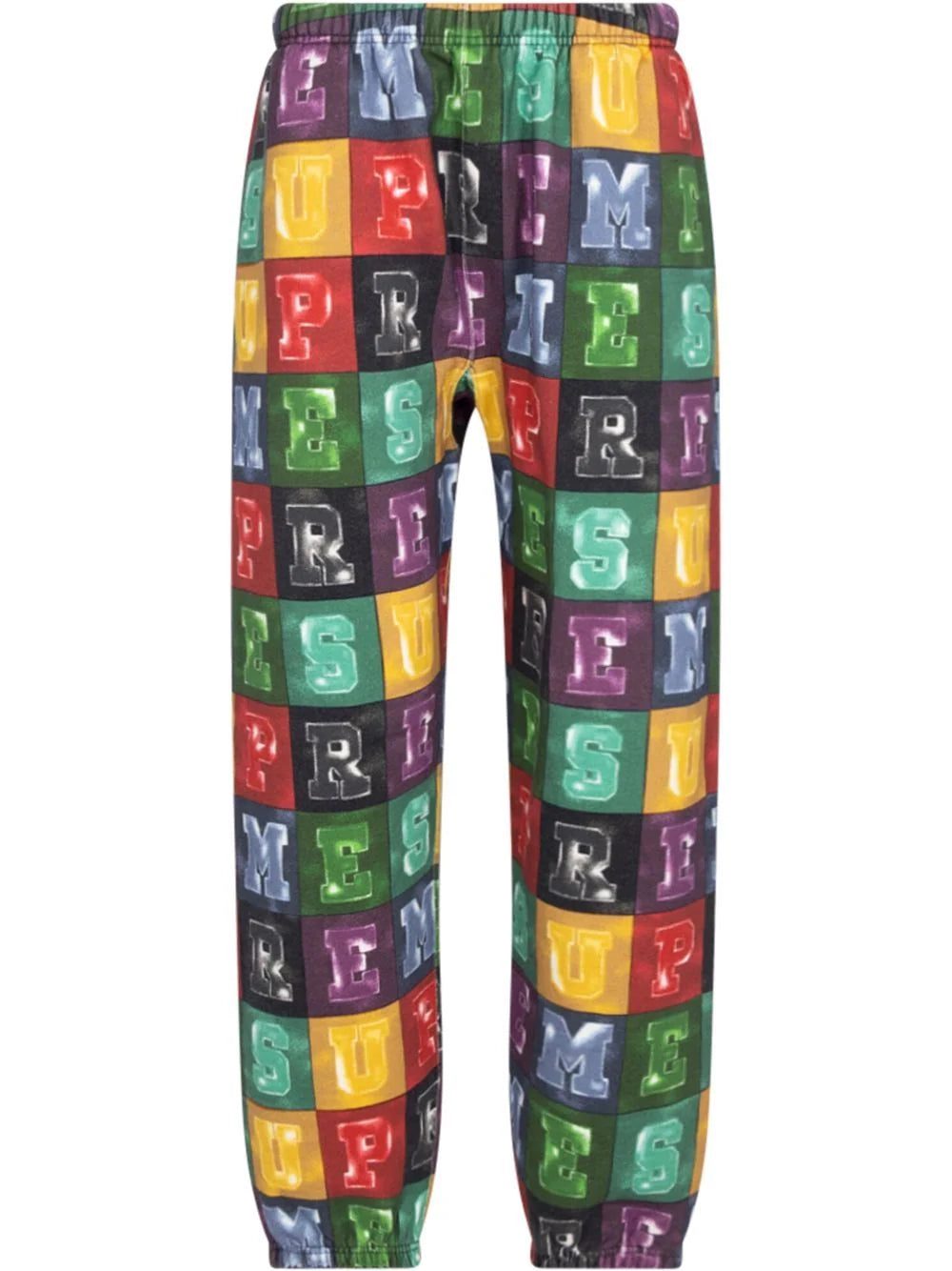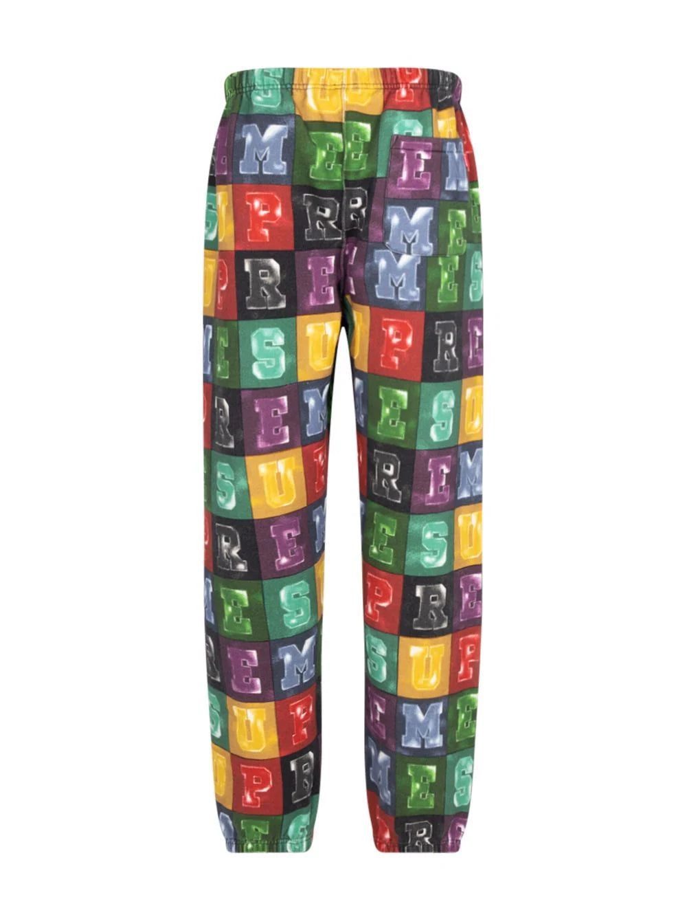 Bold and functional, these Supreme track pants are decorated with a multicoloured blocks print all over. Its design is crafted from cotton and features an elasticated waistband and elasticated ankles for a practical touch.
