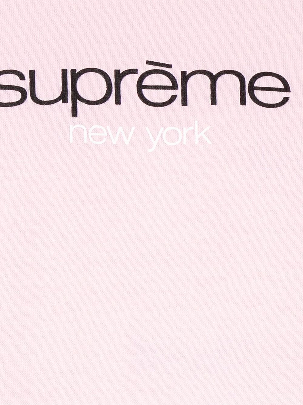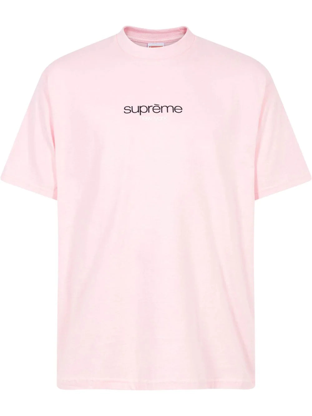 An SS22 iteration of Supreme's original 1998 Classic-logo T-shirt, this piece pairs a relaxed crew-neck silhouette with subtle graphics to the front inspired by clothing brand Courrèges.