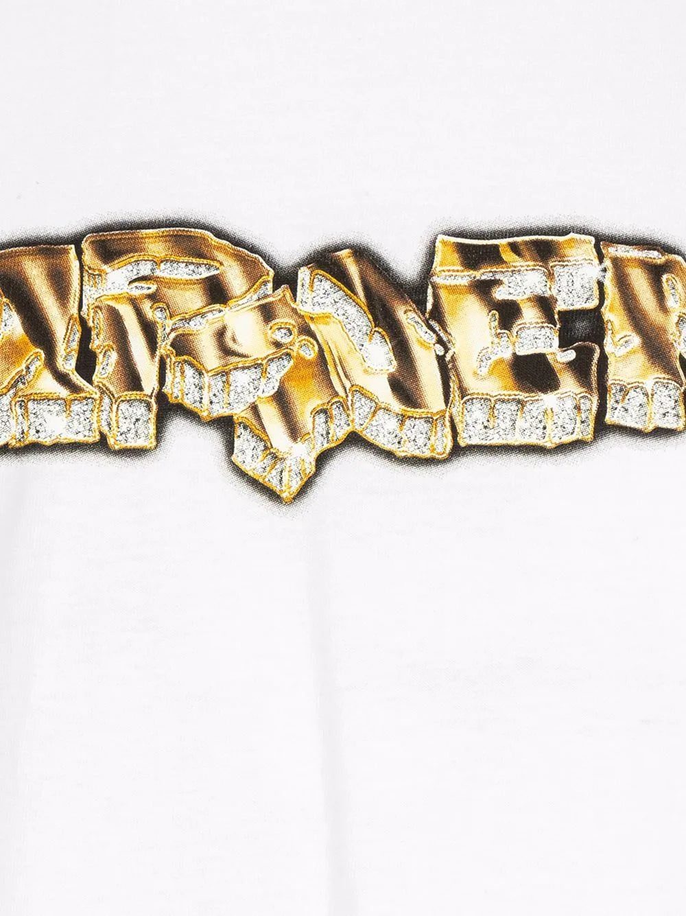 Supreme showcases their affinity for bold branding and relaxed silhouettes with this T-shirt. Crafted from cotton, it boasts contrasting logo graphics to the front, emphasised by a bright pattern.