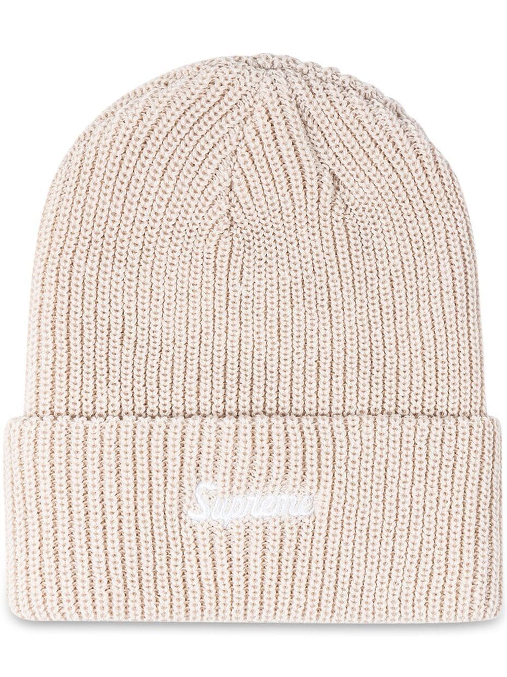 Supreme's loose gauge beanie is back - this time, in a beige colour. The accessory features a minimal design, crafted from cotton, enhanced with a white embroidered logo on the front.