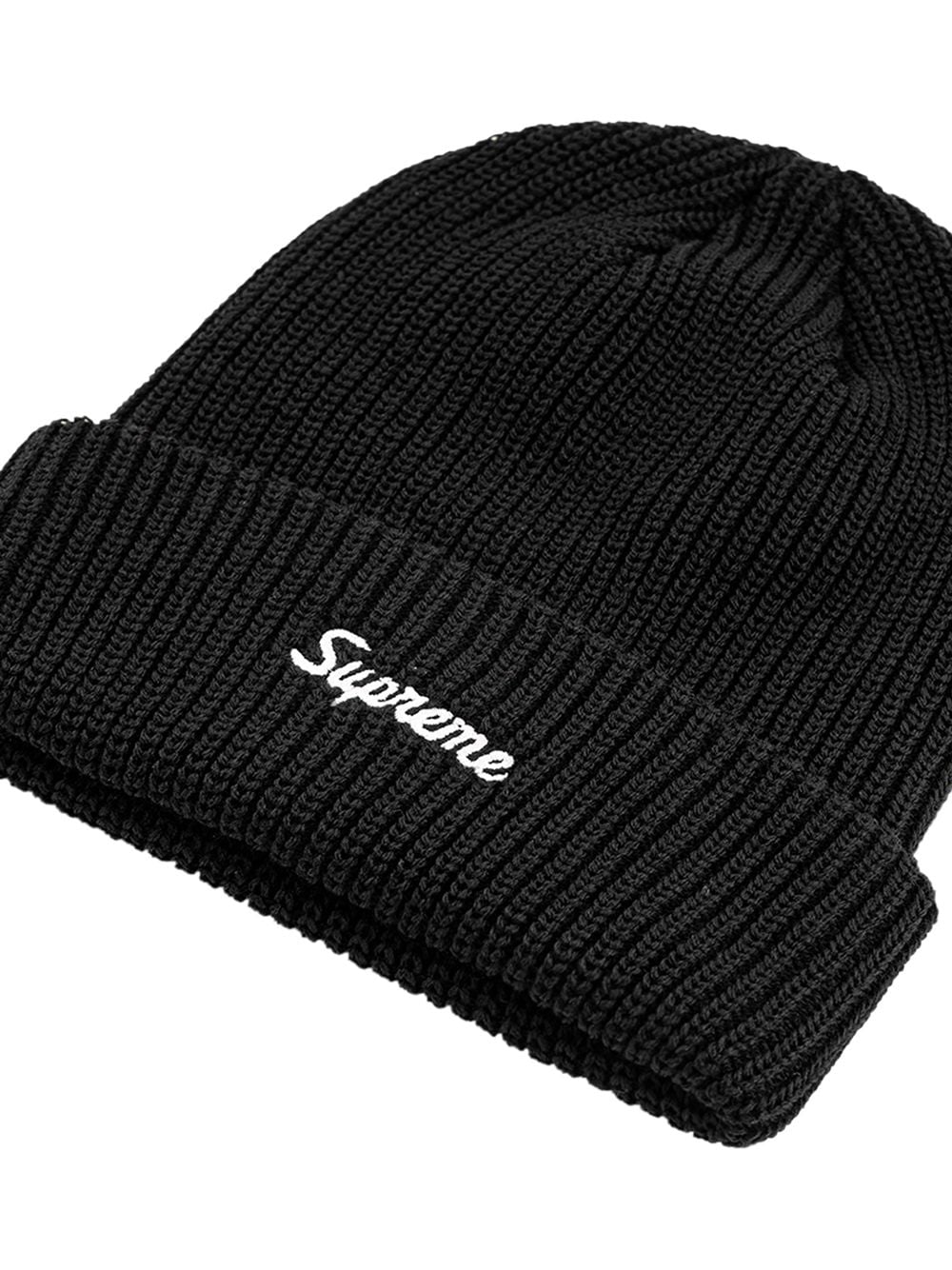 Take a page out of Supreme's winterwear book. Invest wisely in this black loose gauge beanie from Supreme. The upturned brim and knitted design will keep the chills out and the warmth in. Now that is a good book to read.