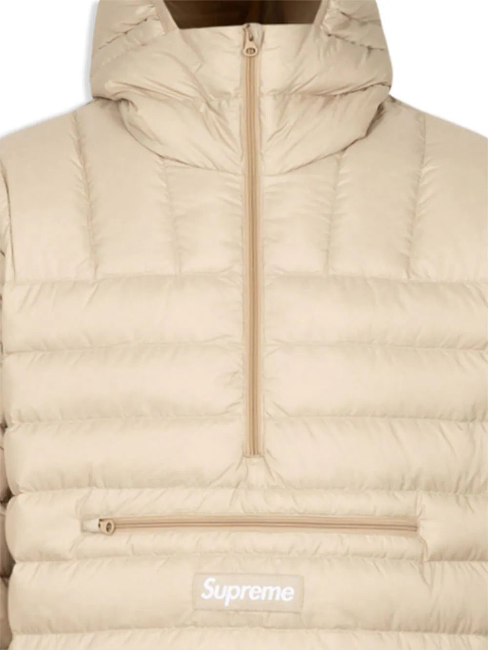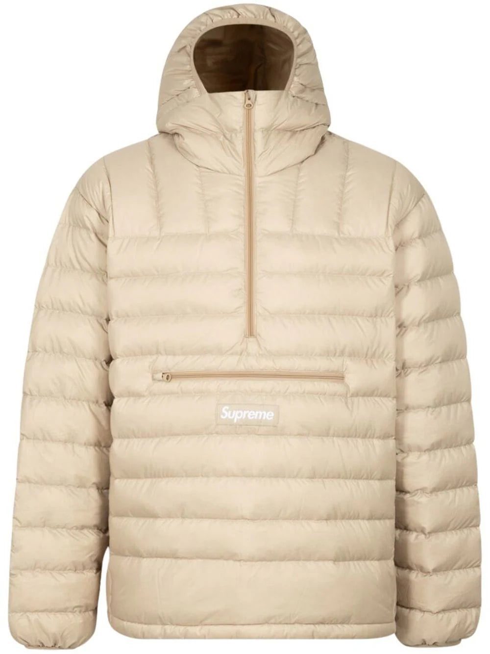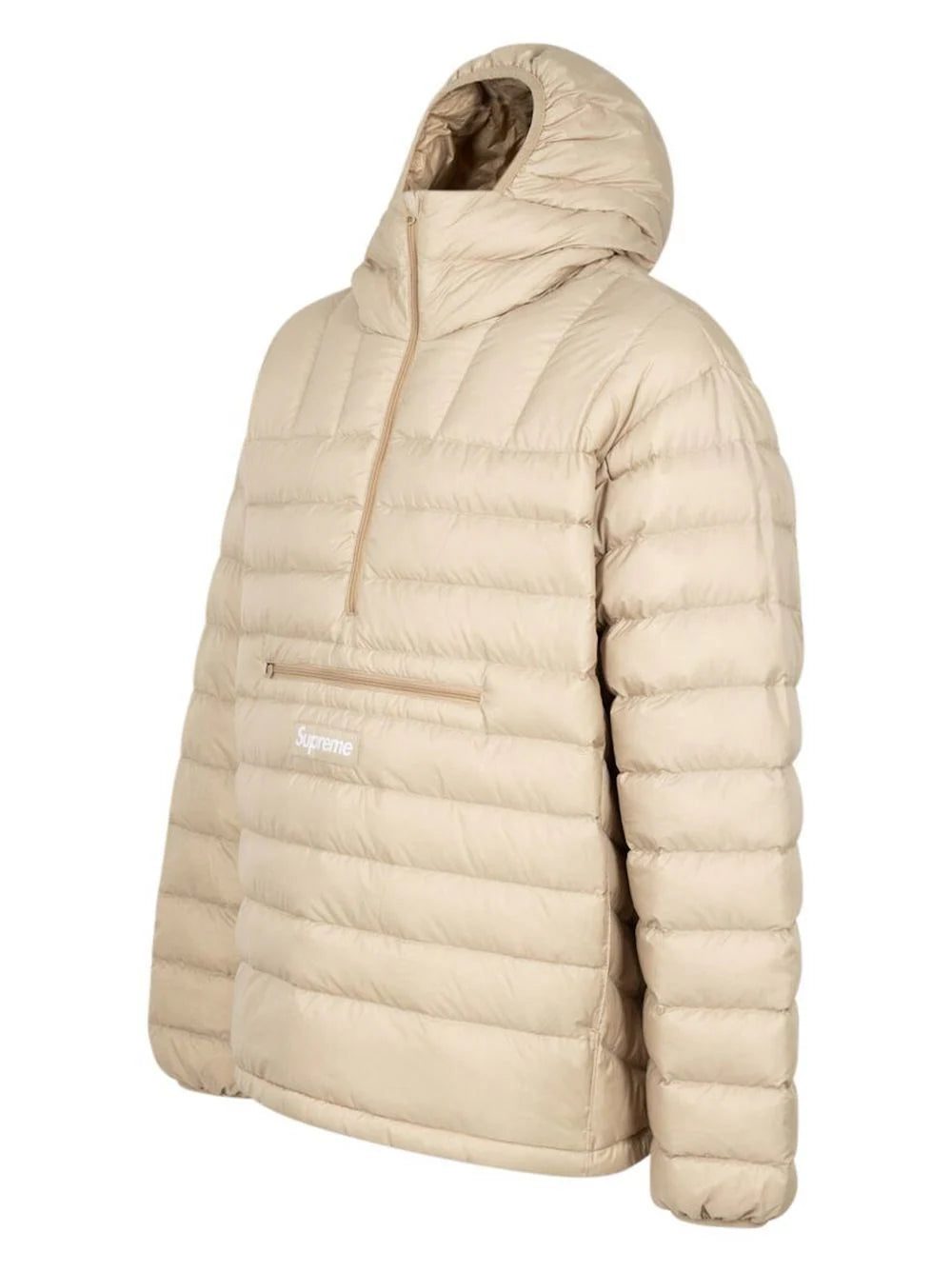 Supreme's signature box logo takes the focus of this half-zip hooded jacket from the brand's AW22 collection. This model features a feather-down filling construction, in beige, and comes with a front zip closure at the front.