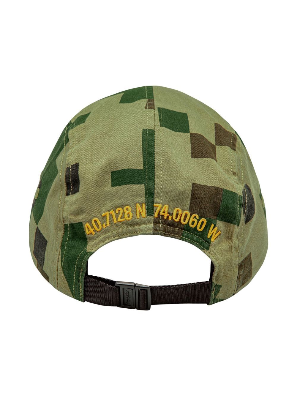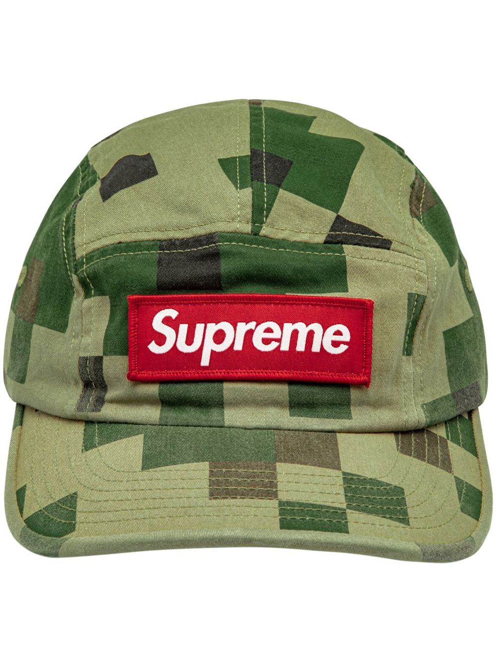 Supreme's military camp cap is back for the new season. This time, the accessory appears in a green-hued cotton construction, elevated by a geometric print and the brand's signature logo on the front.