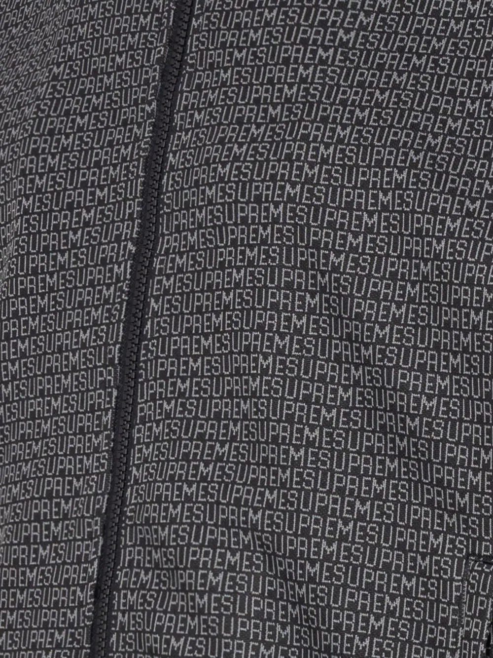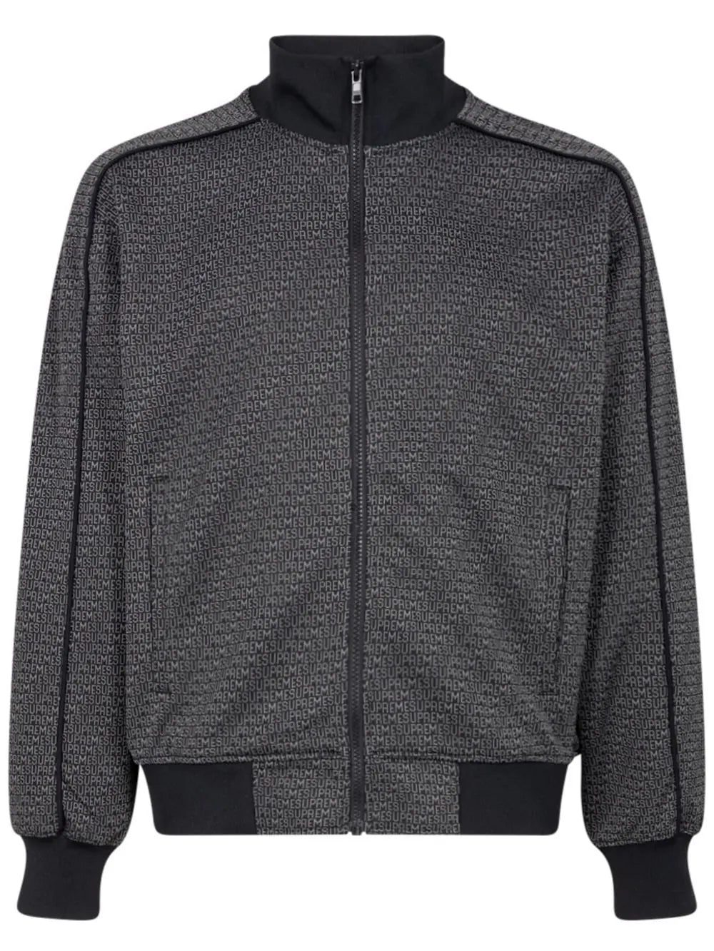Following the brand's bold style, this black track jacket from Supreme is enhanced with an all-over logo print. Its sporty design features a high neck and two side welt pockets for storage.