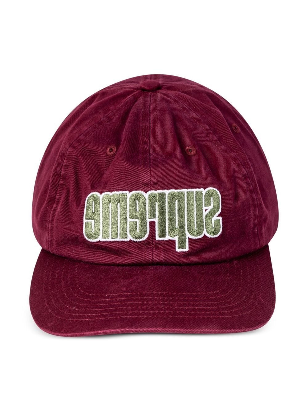 Supreme continues their signature branding-focused design with this cap, detailing it with a reversed logo to the front for a bold finish.