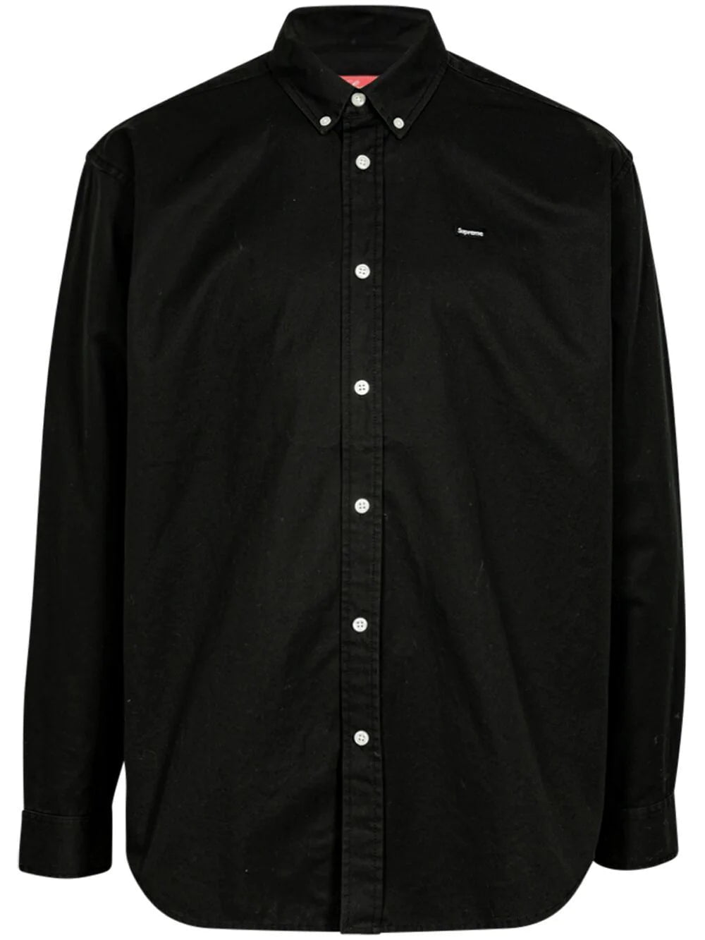 Supreme's signature box logo takes the focus of this long-sleeve shirt from the brand's SS23 collection. The detail appears on the chest blending with the rest of its all-black cotton construction.