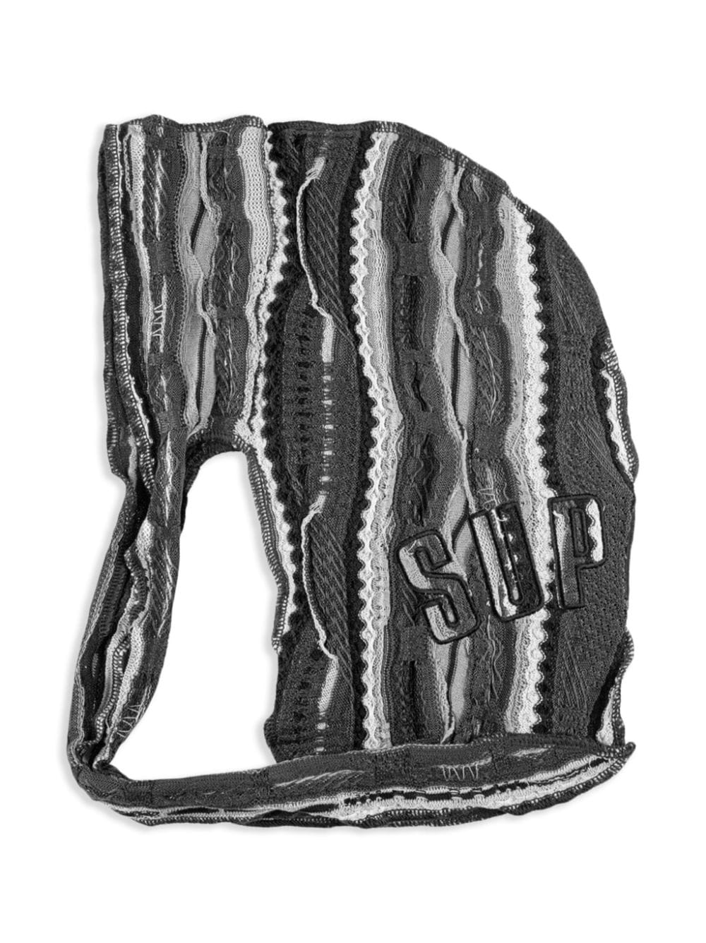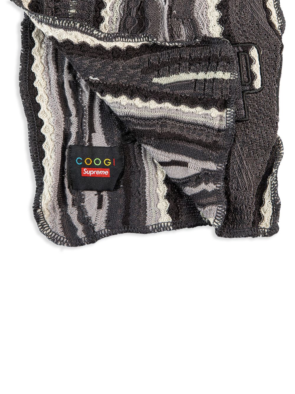 Supreme adds some flair and crafstmanship into this black and grey-hued durag with the help of Australian brand Coogi. It's knitted into a varyingly textured striped pattern and features a slightly camouflaged embroidered logo for a subtle branded finish.