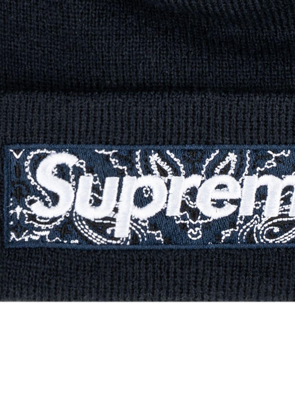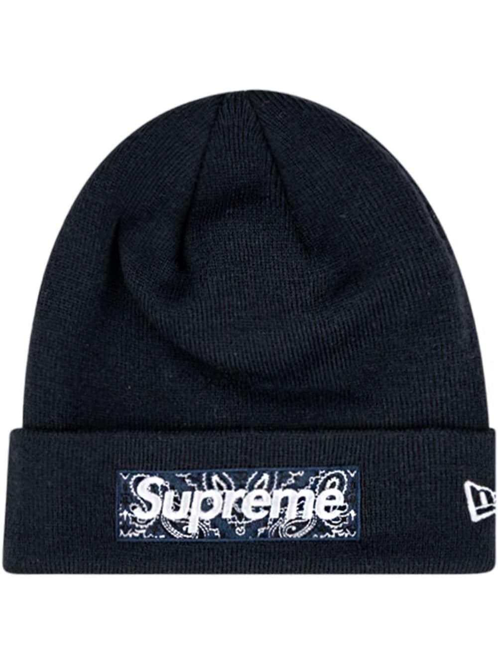 If you have to keep your head warm you may as well opt for the best. Make sure everyone knows you mean streetwear business with this navy blue wool x New Era logo beanie from Supreme. You'll never have to answer 'where is your hat from?' again. Featuring an upturned brim, a knitted style and a front logo patch.