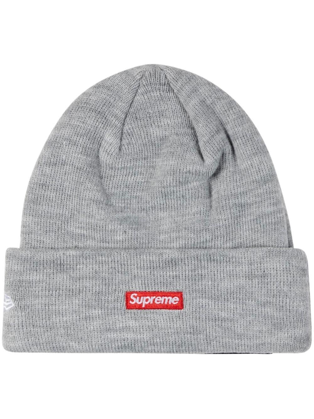 Supreme is renowned for its branded streetwear pieces, exemplified by this heather grey beanie. Designed in collaboration with headwear brand New Era, the simple construction is elevated with a signature box logo and embroidered 'S' motif topped with devilish horns.