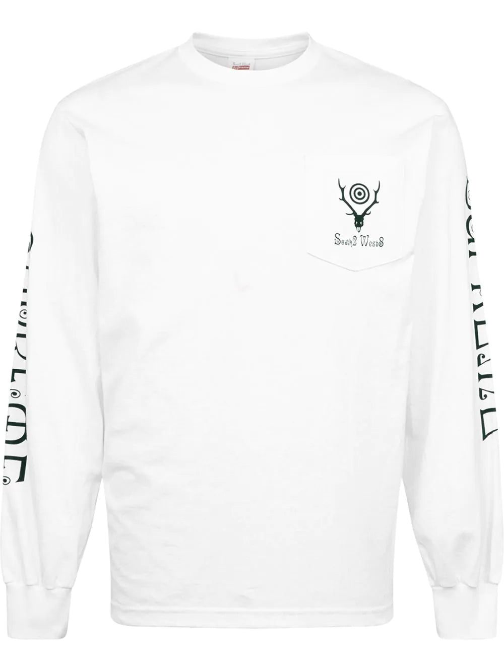 Supreme's love for all things adventure extends outwards with this T-shirt. Designed in collaboration by Japanese fishing-inspired brand South2 West8, the white cotton design is anchored with both logos across the sleeves and front pocket for a stamp of approval.