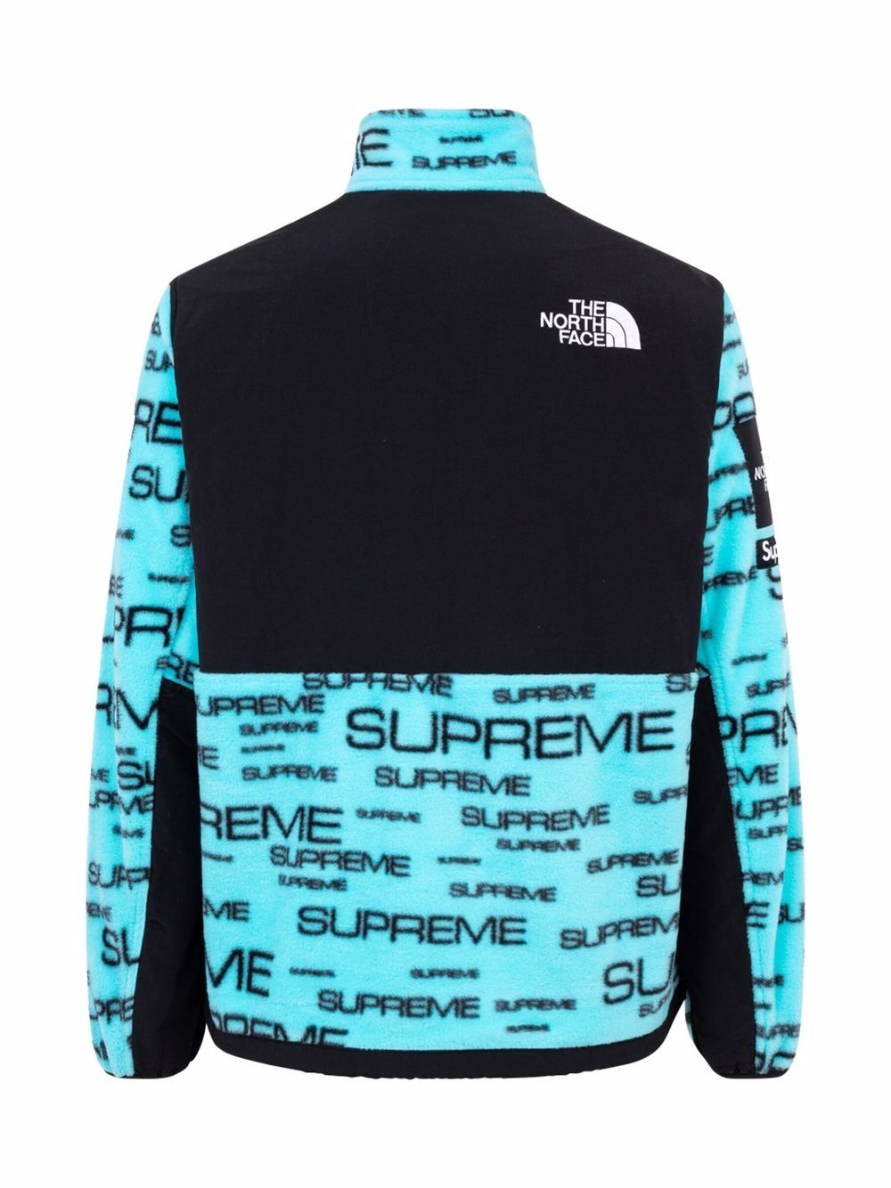 Supreme and The North Face are back with another collaboration. This aqua blue Tech fleece jacket is part of the AW21 collection, and it stands out thanks to the black logos all over.