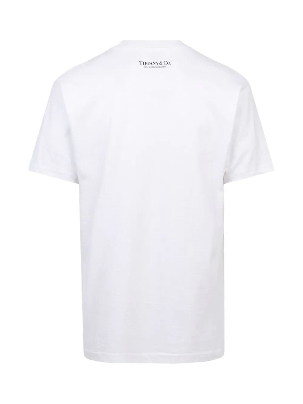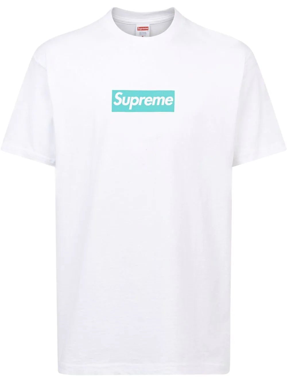 The Supreme x Tiffany & Co. box logo T-shirt in white was released as a part of the two brands' first-ever collaboration. This piece is crafted from cotton and features a Supreme box logo on the chest and Tiffany's logo at the rear.
