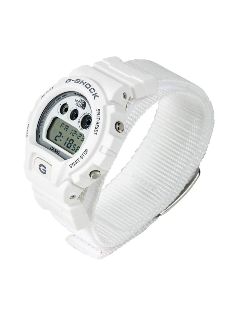 Japanese watchmaker Casio has recently released a triple collaboration with The North Face and Supreme. This white resin-based DW-6900 watch features a triple graph configuration and a double fabric strap with the logo of the two streetwear brands.