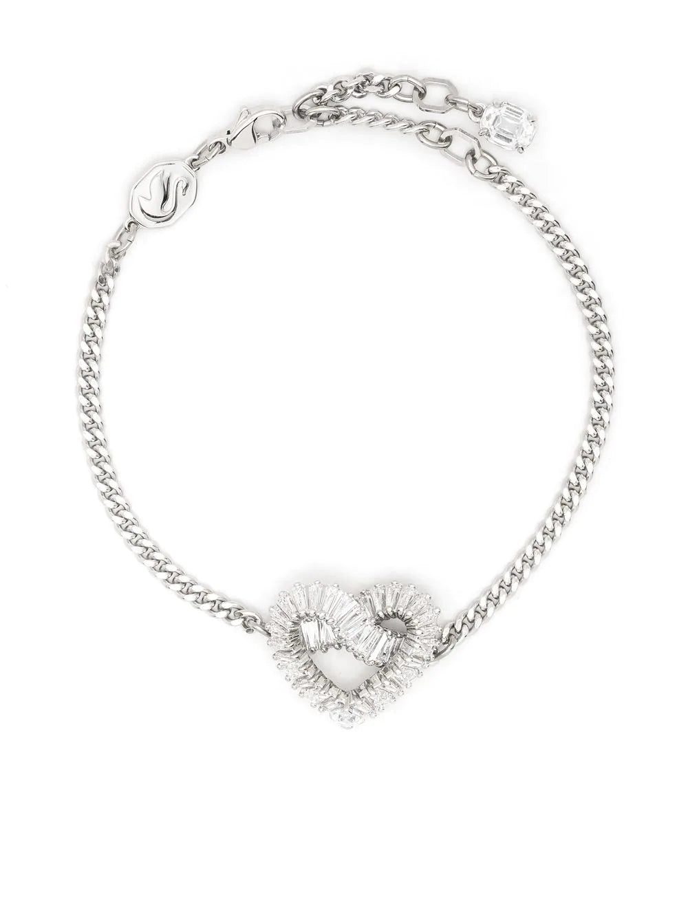Matrix heart pendant bracelet from Swarovski featuring silver-tone, Swarovski crystal embellishment, heart charm, chain-link detailing and clasp fastening.