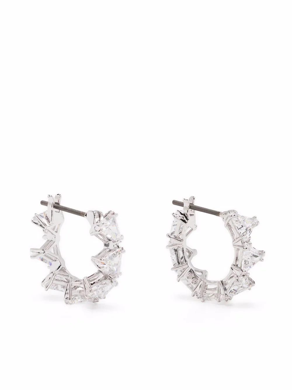 Silver Swarvoski crystal/brass Millenia mini hoop earrings from Swarovski featuring Swarovski crystal embellishment and small hoop design. Sold in pairs..
