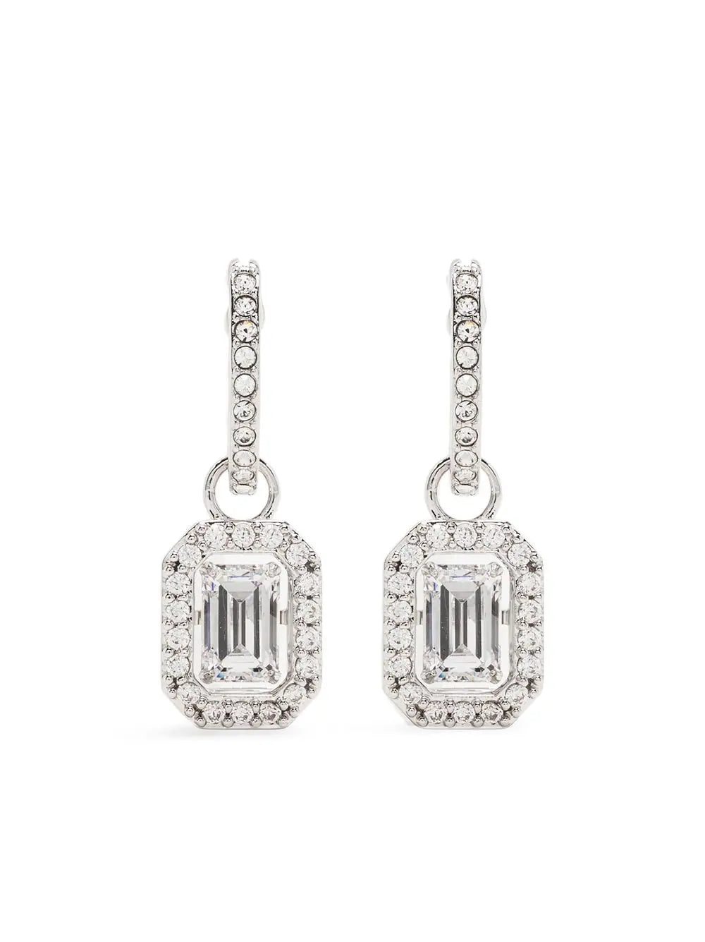 Millenia octagon-cut drop earrings from Swarovski featuring silver-tone, white, rhodium plating, Swarovski crystal embellishment and post-back fastening. These earrings come as a pair..