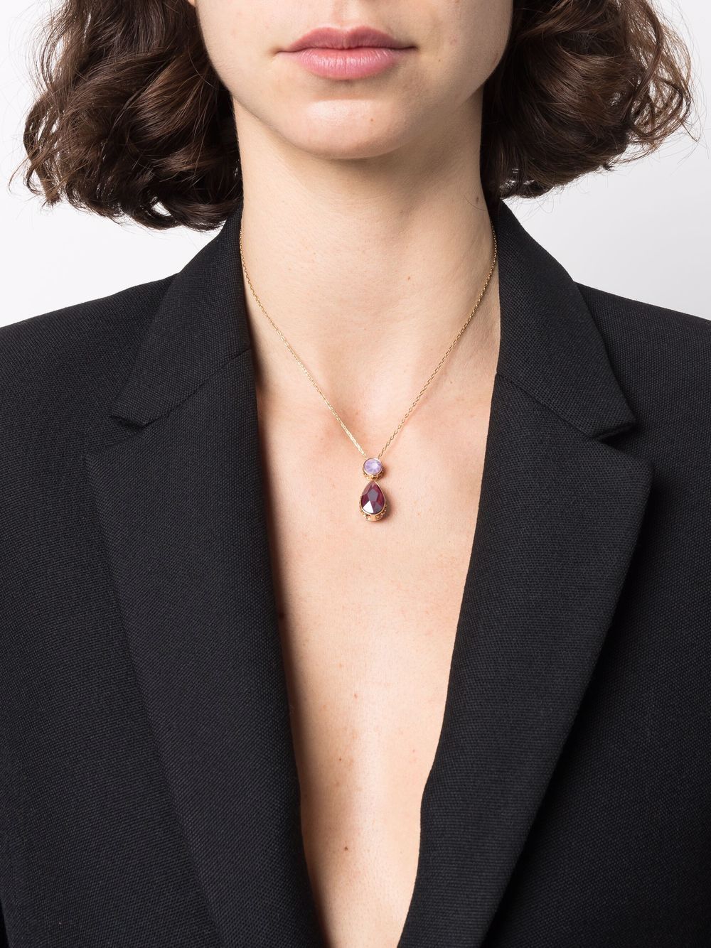 Purple gold-tone plated brass Orbita crystal-drop necklace from Swarovski featuring drop design, Swarovski crystal embellishment, adjustable-length chain and lobster claw fastening.