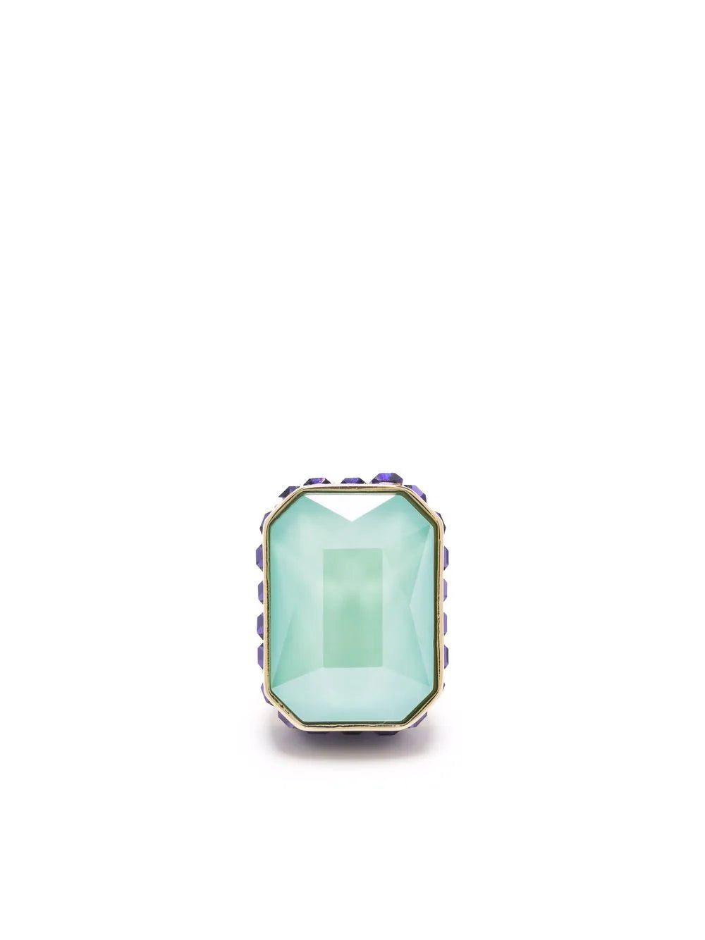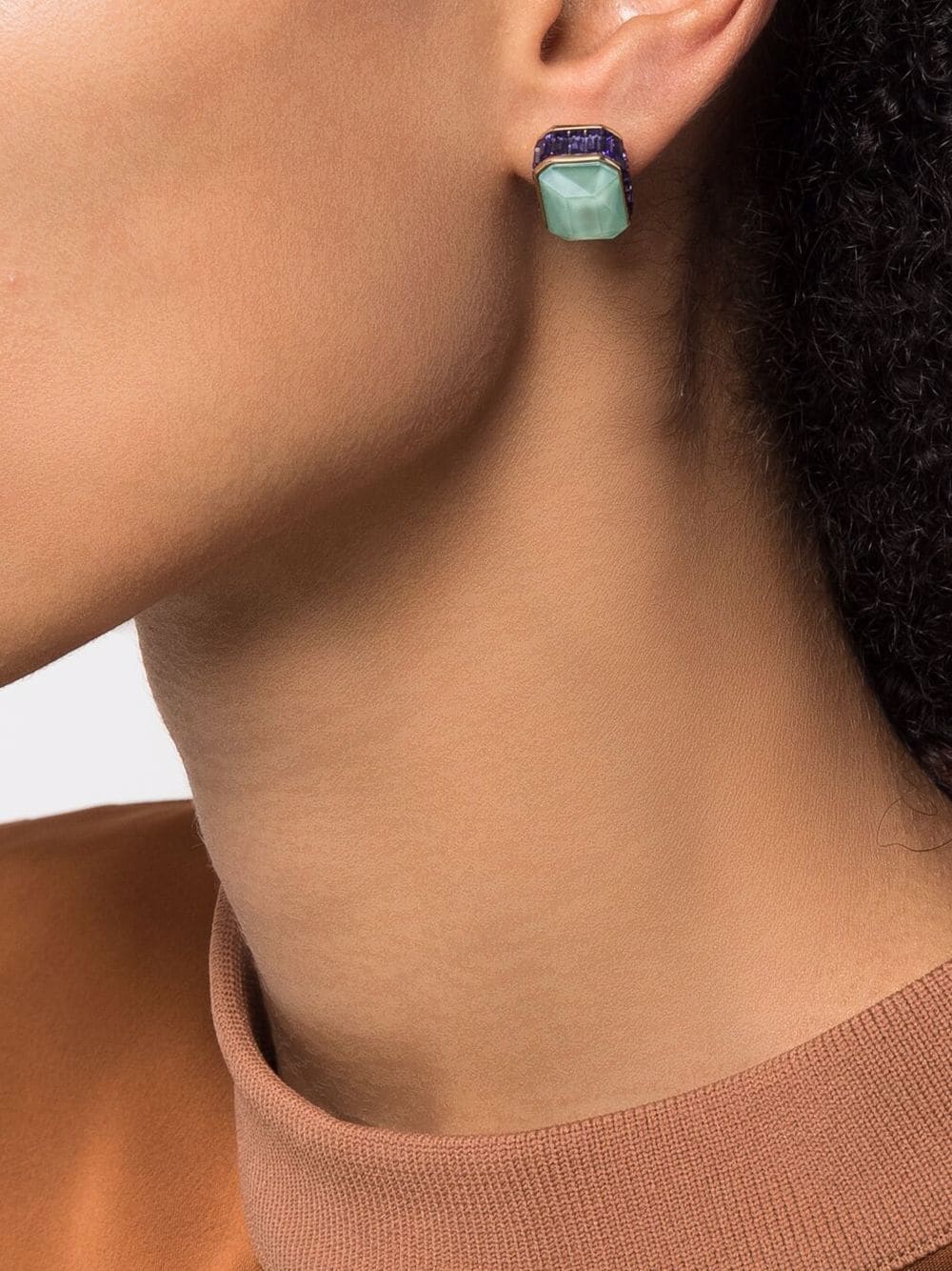 Part of the Orbita family, designed by Creative Director Giovanna Engelbert for Collection I, this reversible stud earring from Swarovski boasts a three-dimensional backing for a seamless finish. Featuring the new octagon cut crystal in elegant mint green, it’s framed with complementary lilac stones and turns to reveal a lime green crystal for a playful twist.