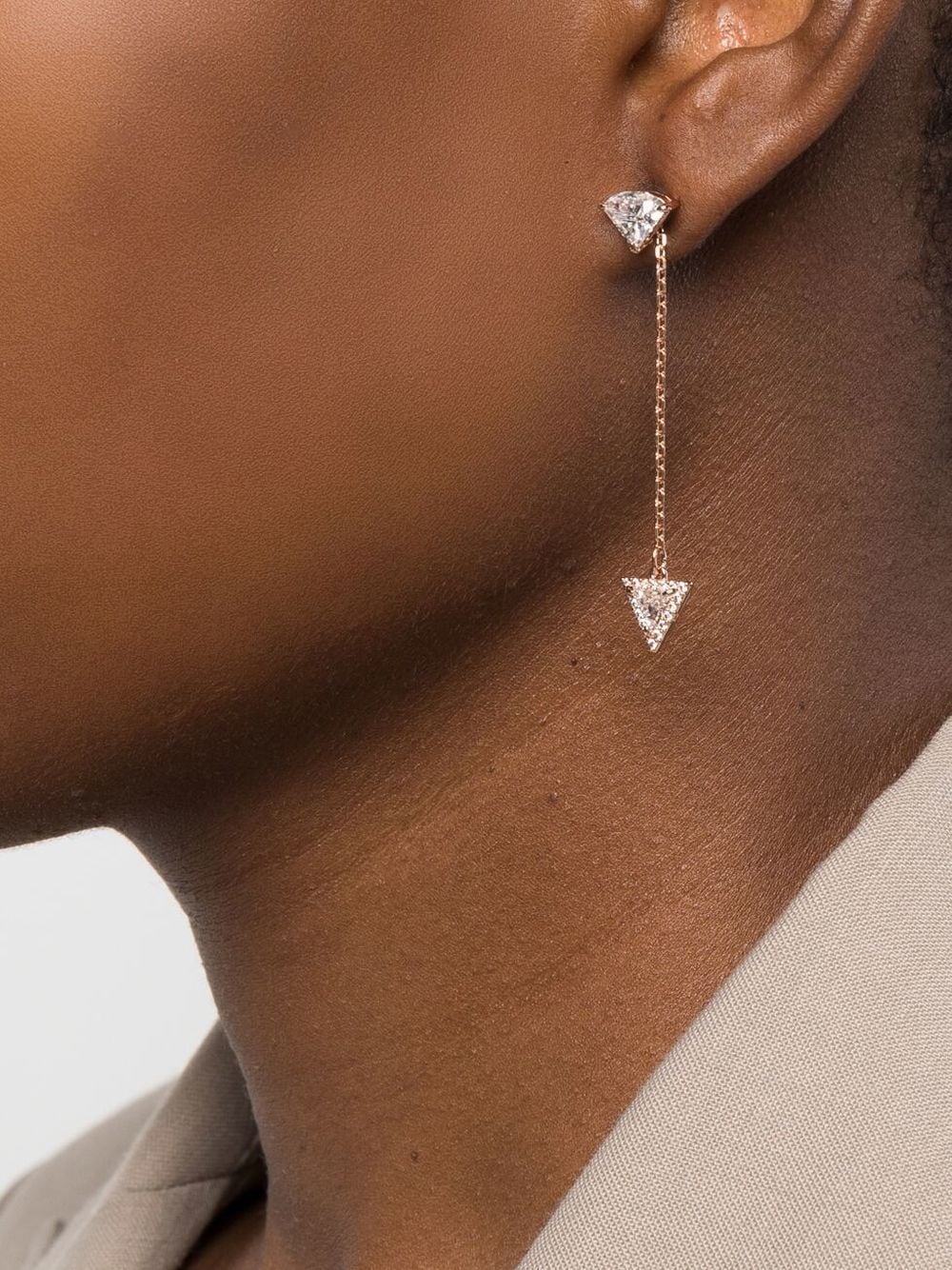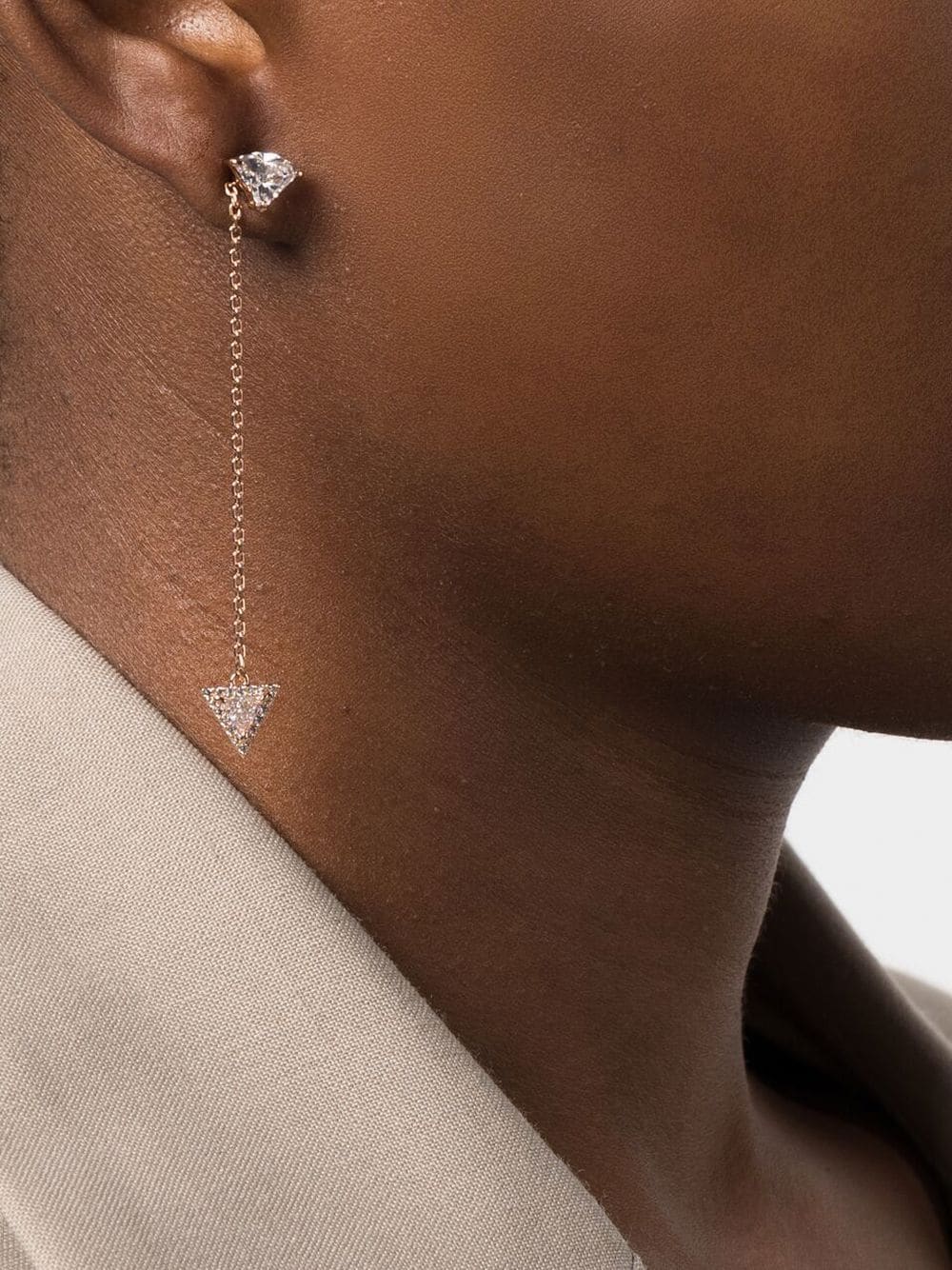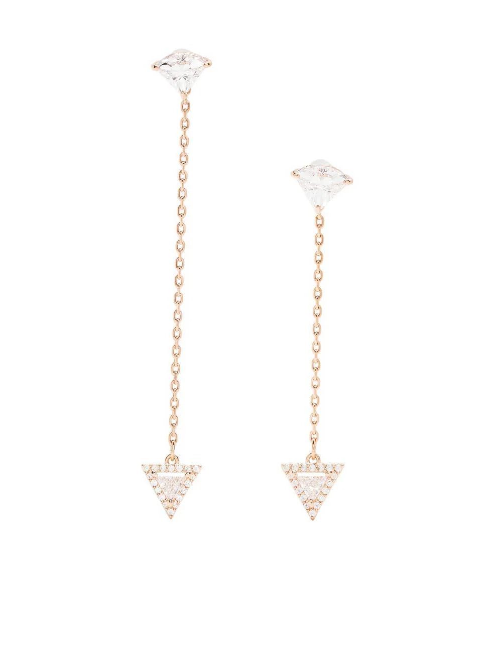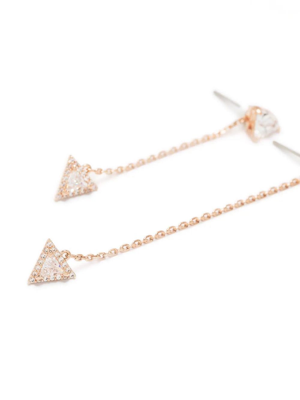 Ortyx triangle-cut drop earrings from Swarovski featuring rose pink, crystal, triangle shape, drop design and for pierced ears. These earrings come as a pair..