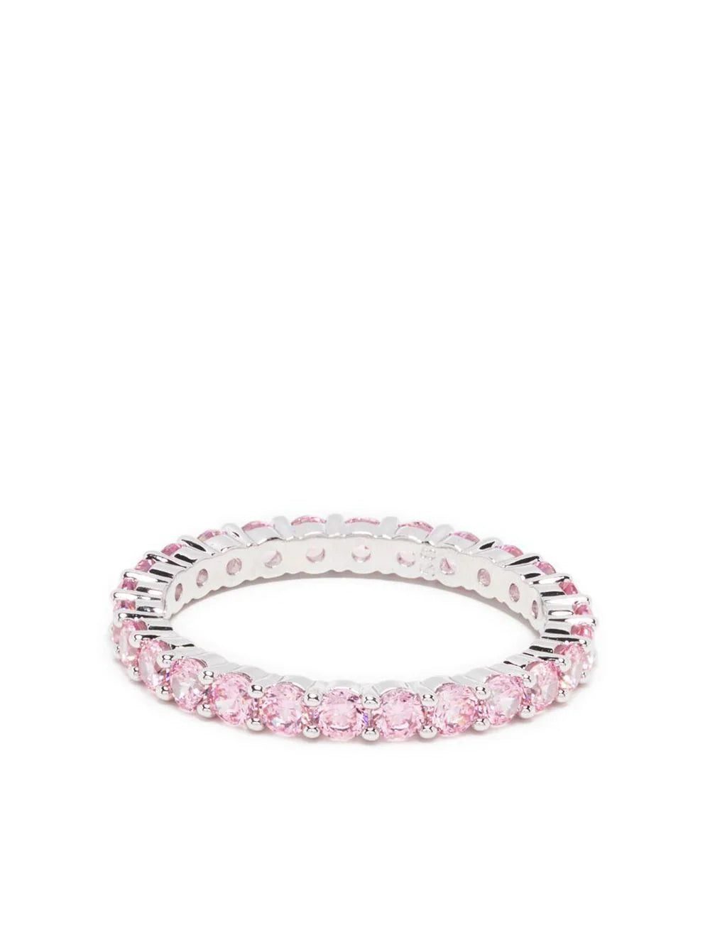 round cut gem embellished ring from Swarovski featuring light pink, silver-tone, brass, glass crystal embellishment, round cut and halo band.