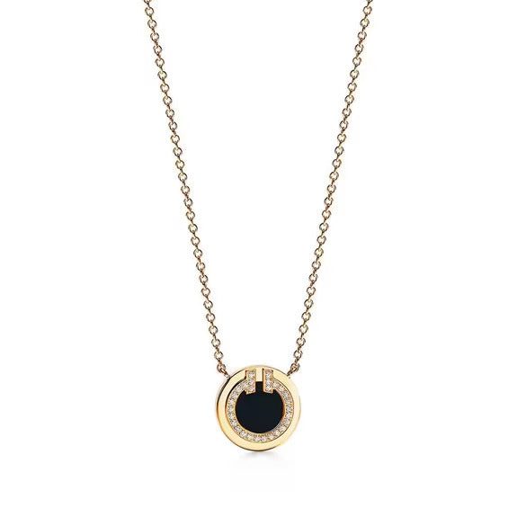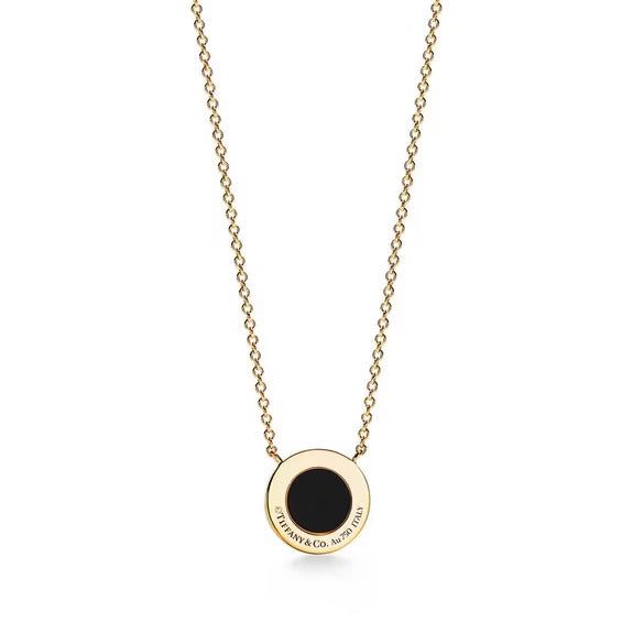 This circle pendant features black onyx, a unique variety of quartz found in nature. This striking pendant is traced with scintillating diamonds, resulting in a modern design with a smooth finish and high polish. As multifaceted as it is iconic, the Tiffany T collection is a tangible reminder of the connections we feel but can't always see. Showcase your personal style by pairing this pendant with other Tiffany designs for a bold look.