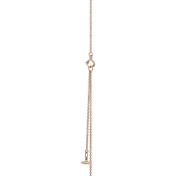 This circle pendant features mother-of-pearl, a natural, iridescent material found in oyster shells. The luminous pendant is traced with scintillating diamonds, resulting in a modern design with high shine and elegant luster. As multifaceted as it is iconic, the Tiffany T collection is a tangible reminder of the connections we feel but can't always see. Showcase your personal style by pairing this pendant with other Tiffany designs for a bold look.