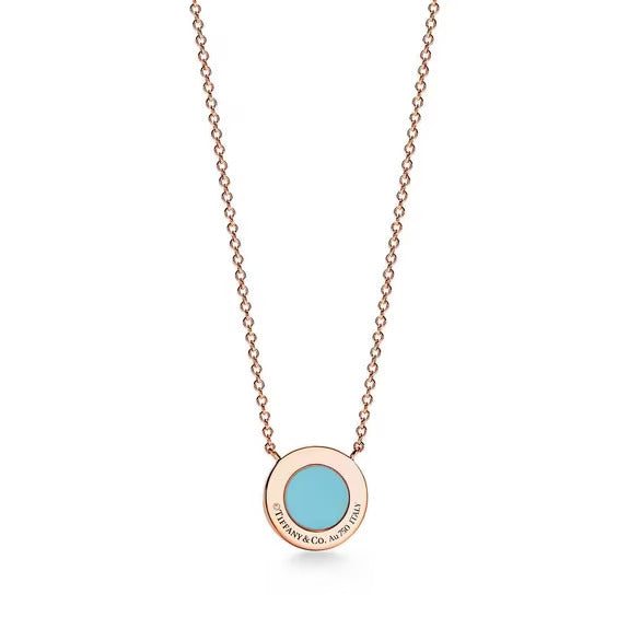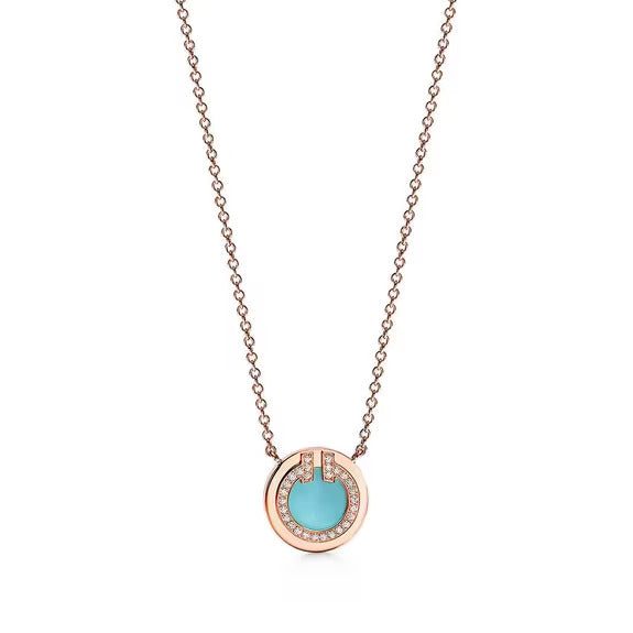 Traced with scintillating diamonds, this circle pendant features turquoise, one of the first stones used in jewelry design and a favorite of Tiffany designers for over a century. The natural formation of the stone creates subtle differences in appearance, ensuring each piece is as unique as its wearer. As multifaceted as it is iconic, the Tiffany T collection is a tangible reminder of the connections we feel but can't always see. Showcase your personal style by pairing this pendant with other Tiffany designs for a bold look.