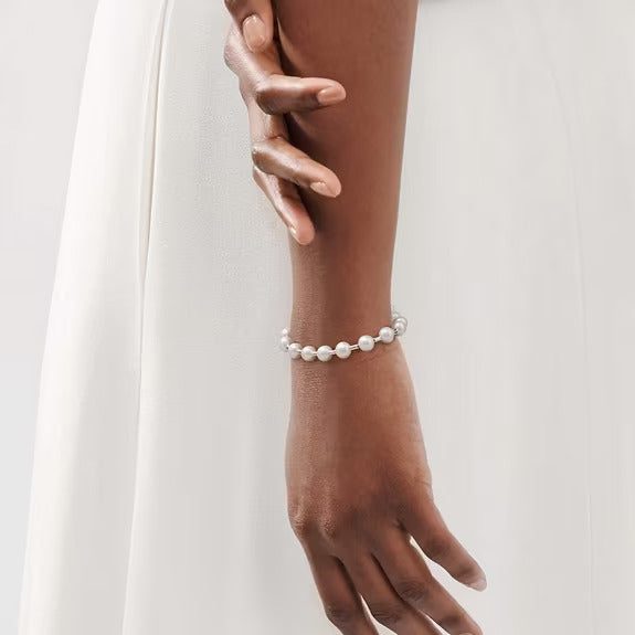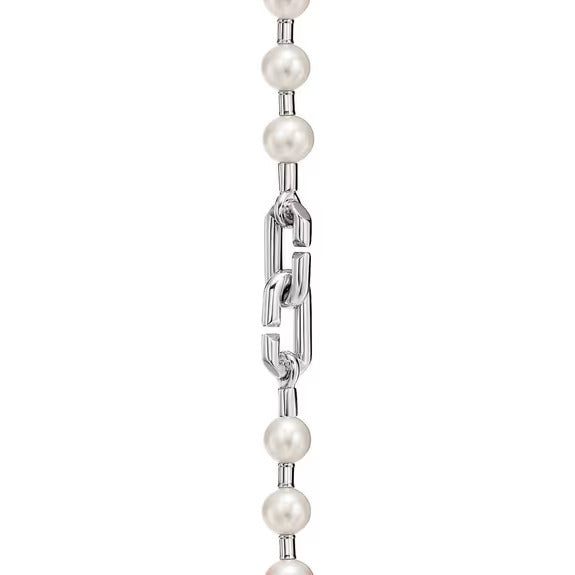 Tiffany HardWear is elegantly subversive and captures the spirit of the women of New York City. The unexpected pairing of utilitarian links and refined pearls form this sterling silver bracelet.