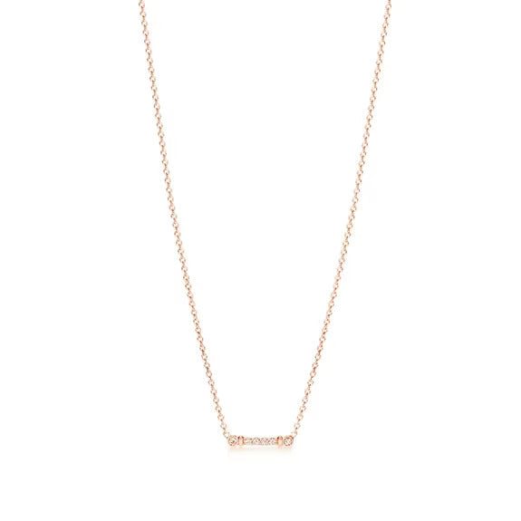 - 18k rose gold with round brilliant diamonds:On a 16" chain