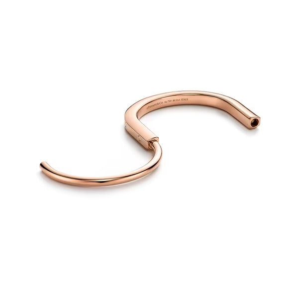 No rules. All welcome. Inspired by the power of togetherness and inclusivity, Tiffany Lock is a bold and visual statement about the personal bonds that make us who we are. Designed to be worn by all genders, the Tiffany Lock bangle features an innovative clasp that echoes the functionality of a padlock, an important motif from The Tiffany Archives. This style is expertly crafted in 18k rose gold with hand-set diamonds for a striking contrast.