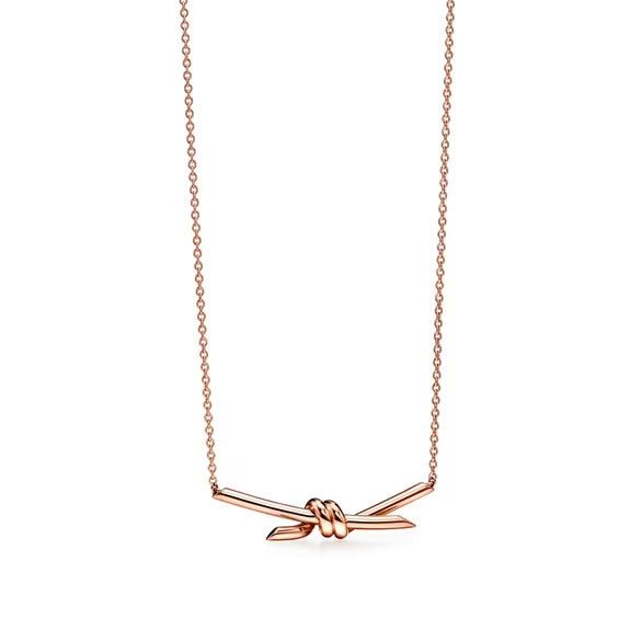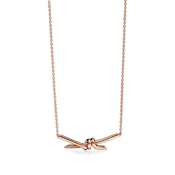 The entwined ends of Tiffany Knot’s signature motif symbolize the power of connections between people. Balancing strength and elegance, each Tiffany Knot design is a complex feat of craftsmanship. This pendant is crafted with rose gold and polished by hand for high shine. Wear on its own or partnered with classic silhouettes for an unexpected pairing.